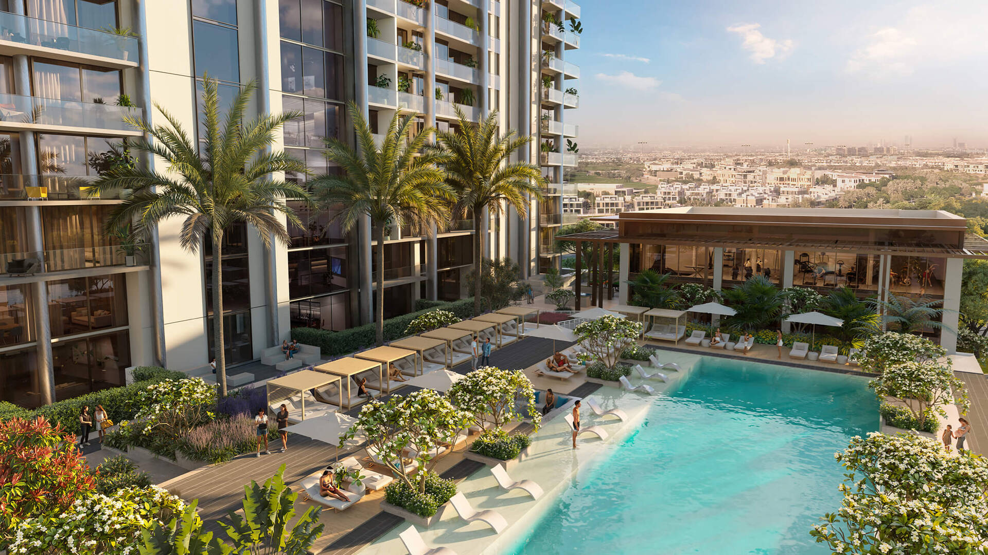 Experience a luxurious project offering unparalleled views of the iconic Burj Khalifa, Ras al Khor Wildlife Sanctuary, Dubai Creek, and lagoons. The Highbury is situated in MBR City, envisioned as Dubai's new center by 2025. The complex features beautifully landscaped gardens, a tennis court, beach areas, and cinemas.