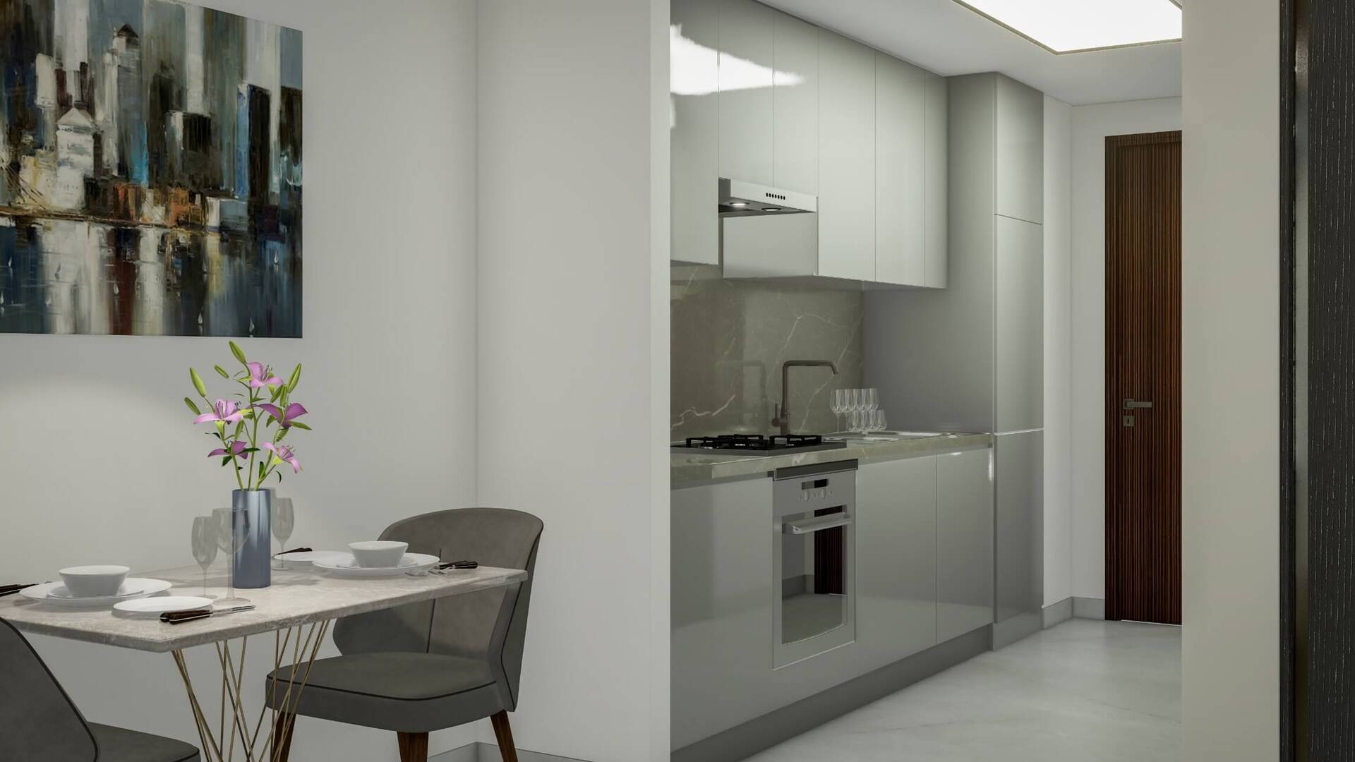 This business-class apartment complex is located within a 5-minute walking distance to the Dubai Canal in Business Bay, the city's business hub, the project features a private park zone, landscaped green area in the open air with pools and recreation zones, and all necessary infrastructure for work and rest.