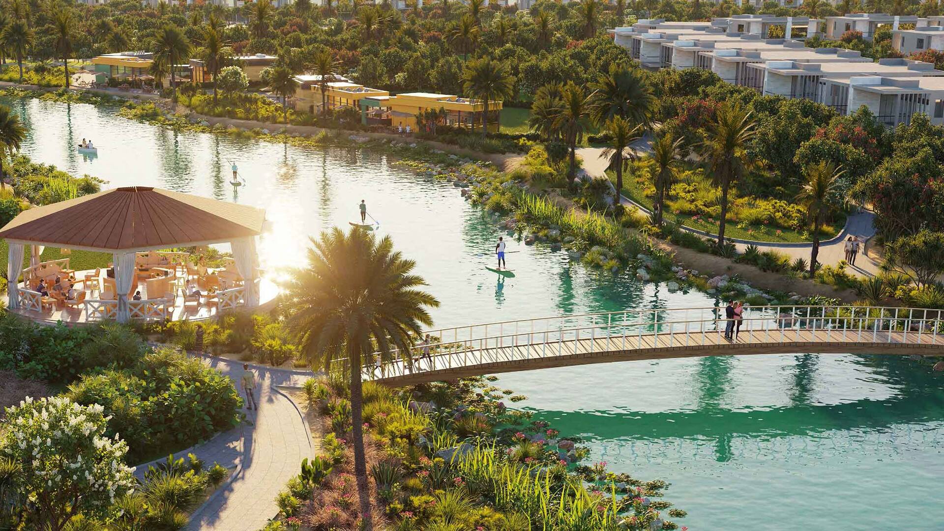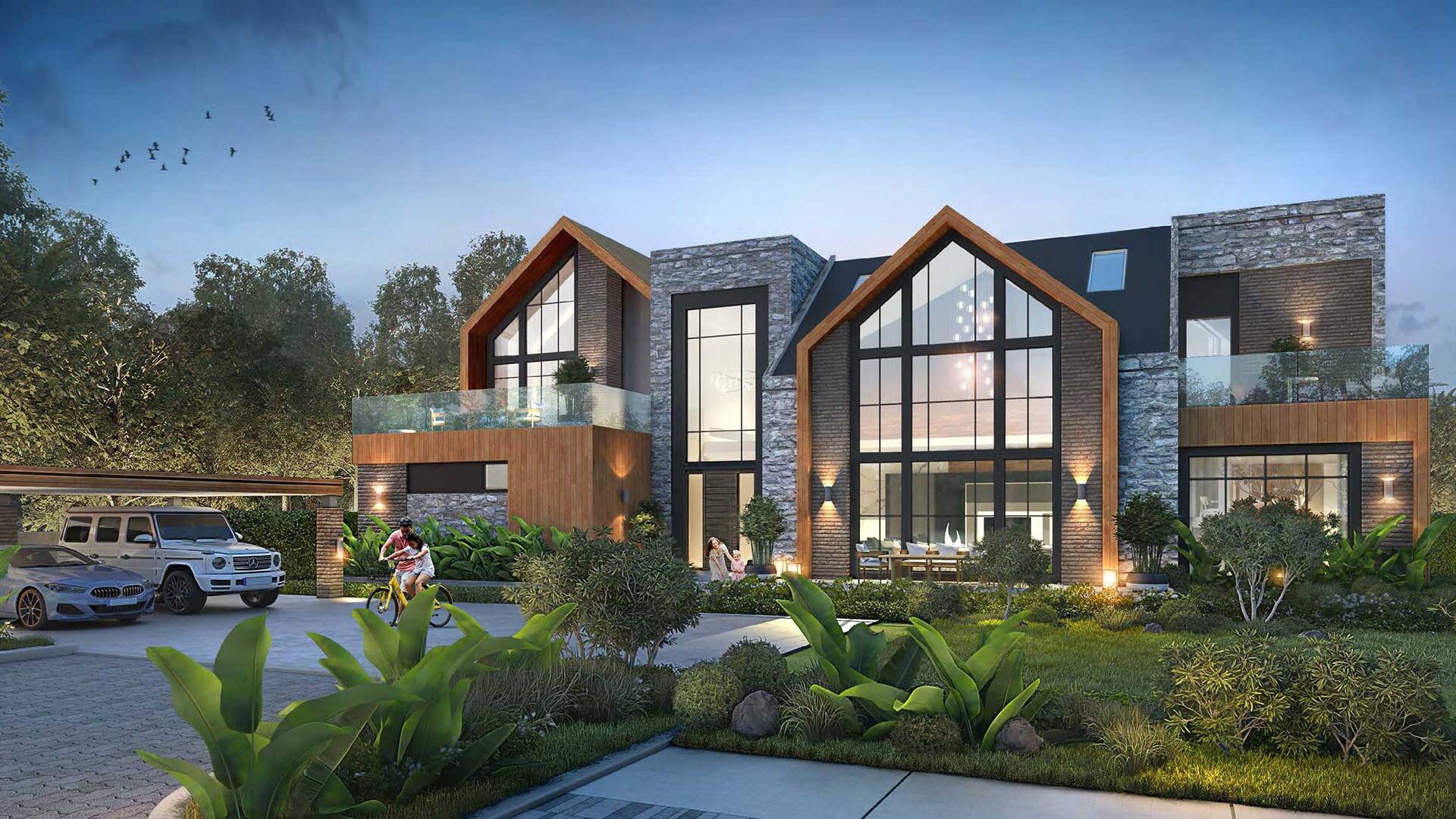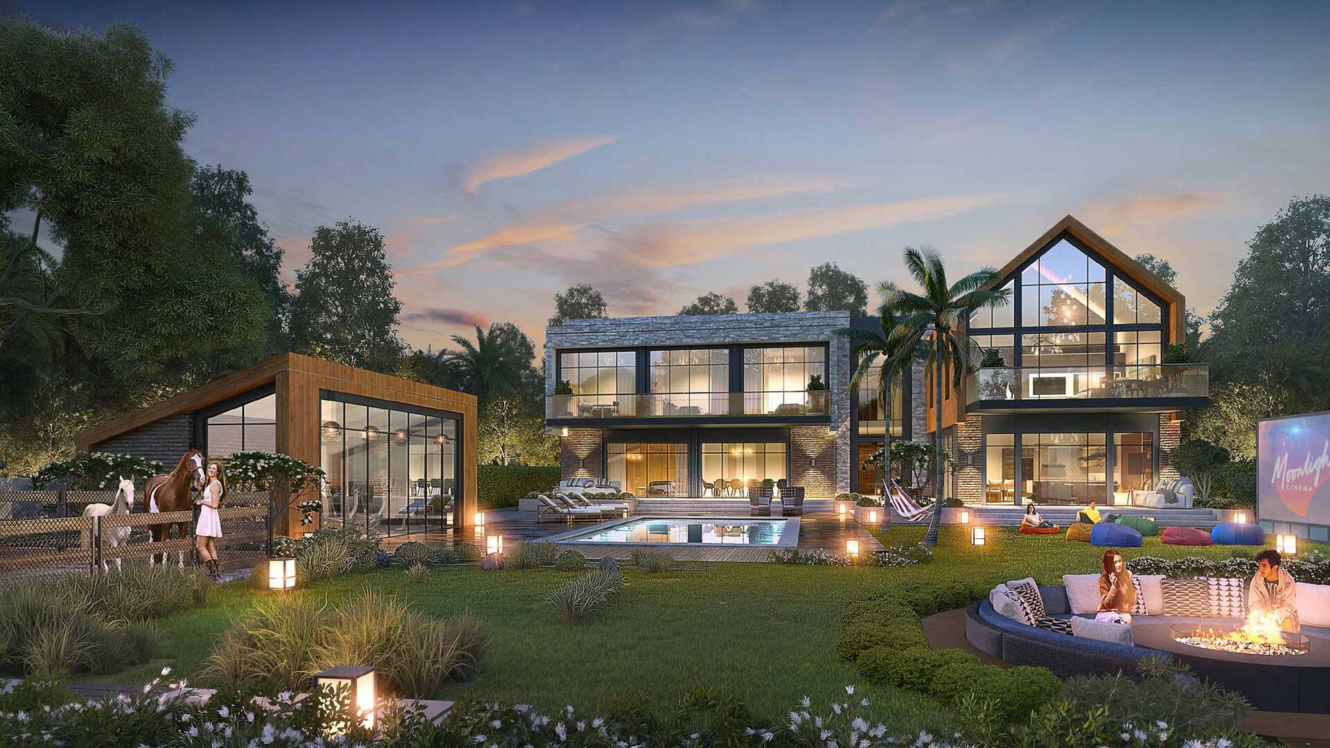 The Farmhouses by Damac present residential offerings of 5 and 6 bedroom farmhouses, spanning 468 or 779 square meters. Available in either North American or European designs, each unit boasts private plots, pools, expansive master bedrooms, and designated storage and laundry spaces.