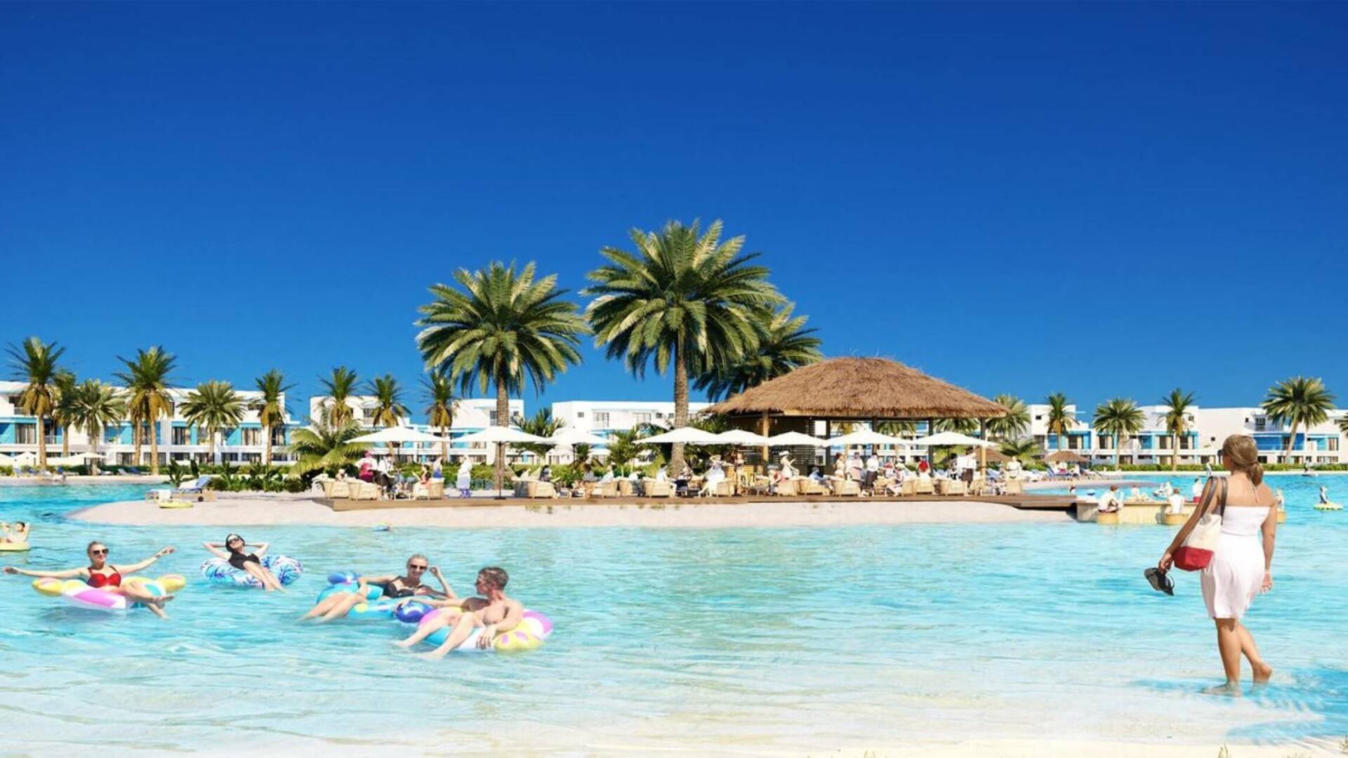 10 crystal water lagoons with beaches. Eight residential communities with vibrant architecture and atmosphere of 8 different Mediterranean cities: Nice, Costa Brava, Santorini, Venice, Malta, Monte Carlo, Portofino, and Marbella. Townhouses, villas, and elite residences.