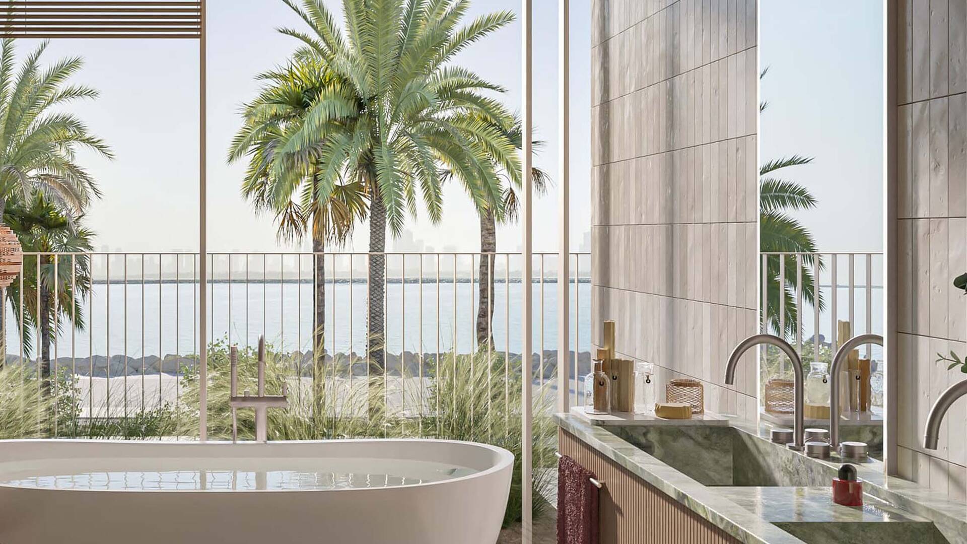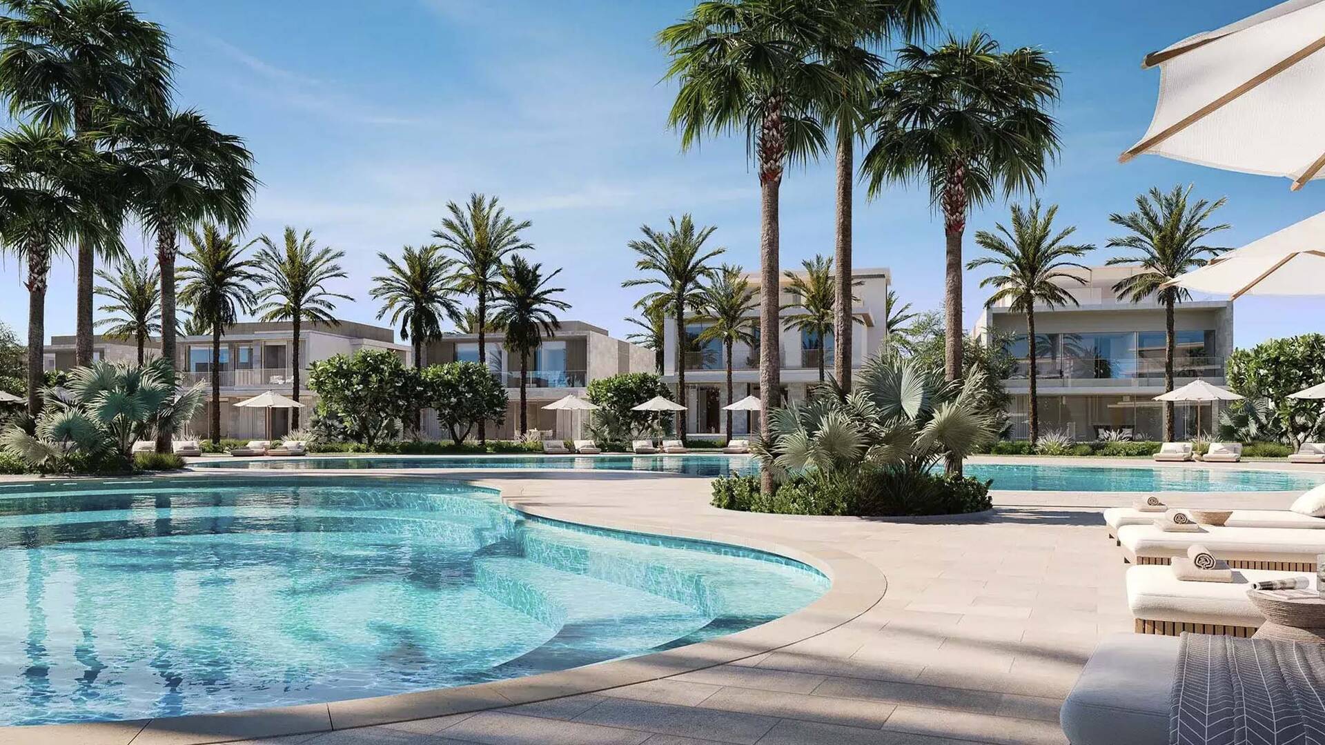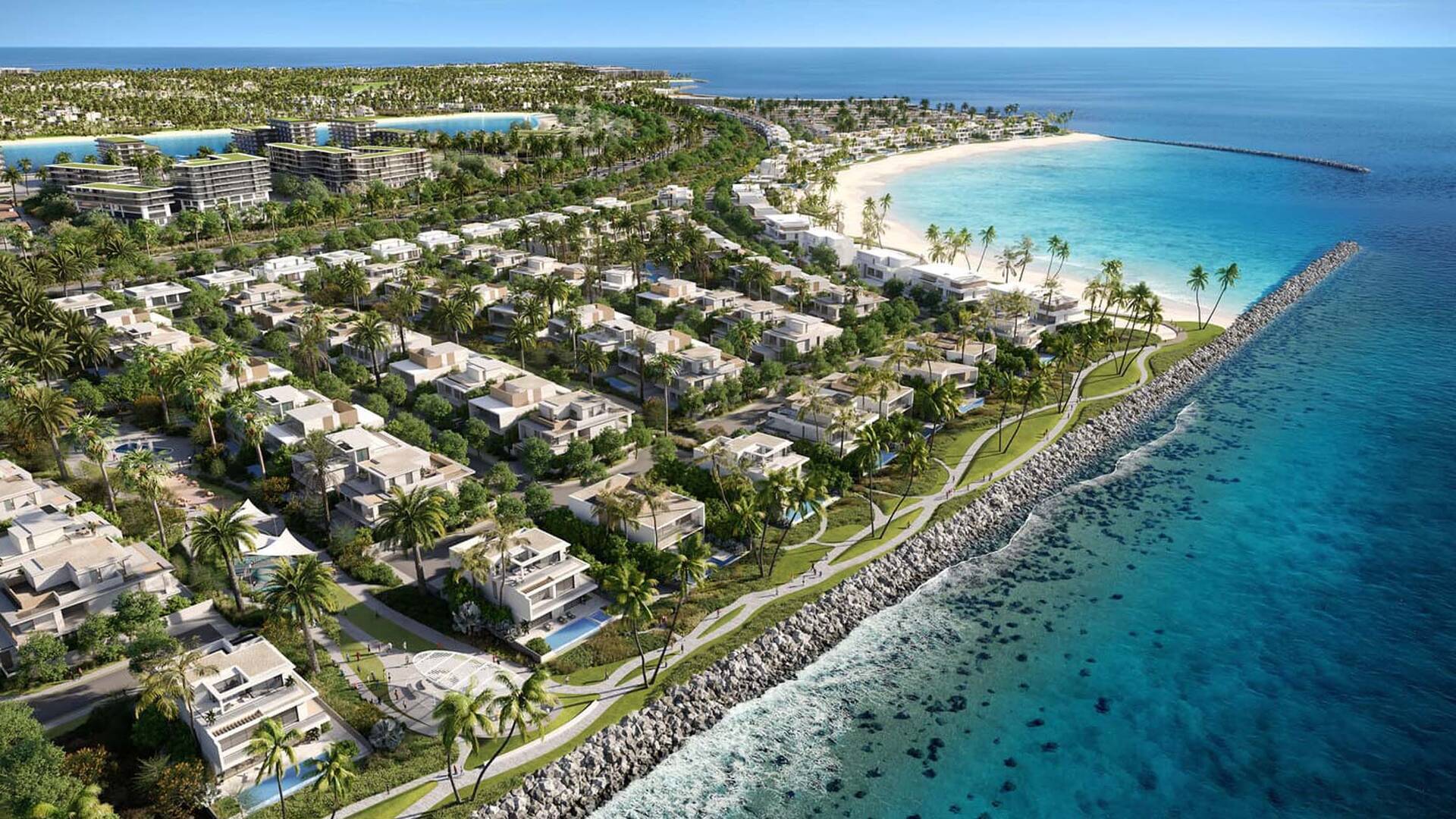 Bay Villas by Nakheel Properties consists of townhouses with 3 and 4 bedrooms, as well as villas with 4, 5, and 6 bedrooms. As of August 8, 2024, single-story 6-bedroom villas with areas ranging from 13,264 to 13,828 sq. ft. are available for purchase. The prices of these homes range from AED 43,067,000 to AED 45,176,000. Nakheel, the developer of this project, is known for its iconic projects such as the legendary Palm Jumeirah, The World, and Jumeirah Islands.