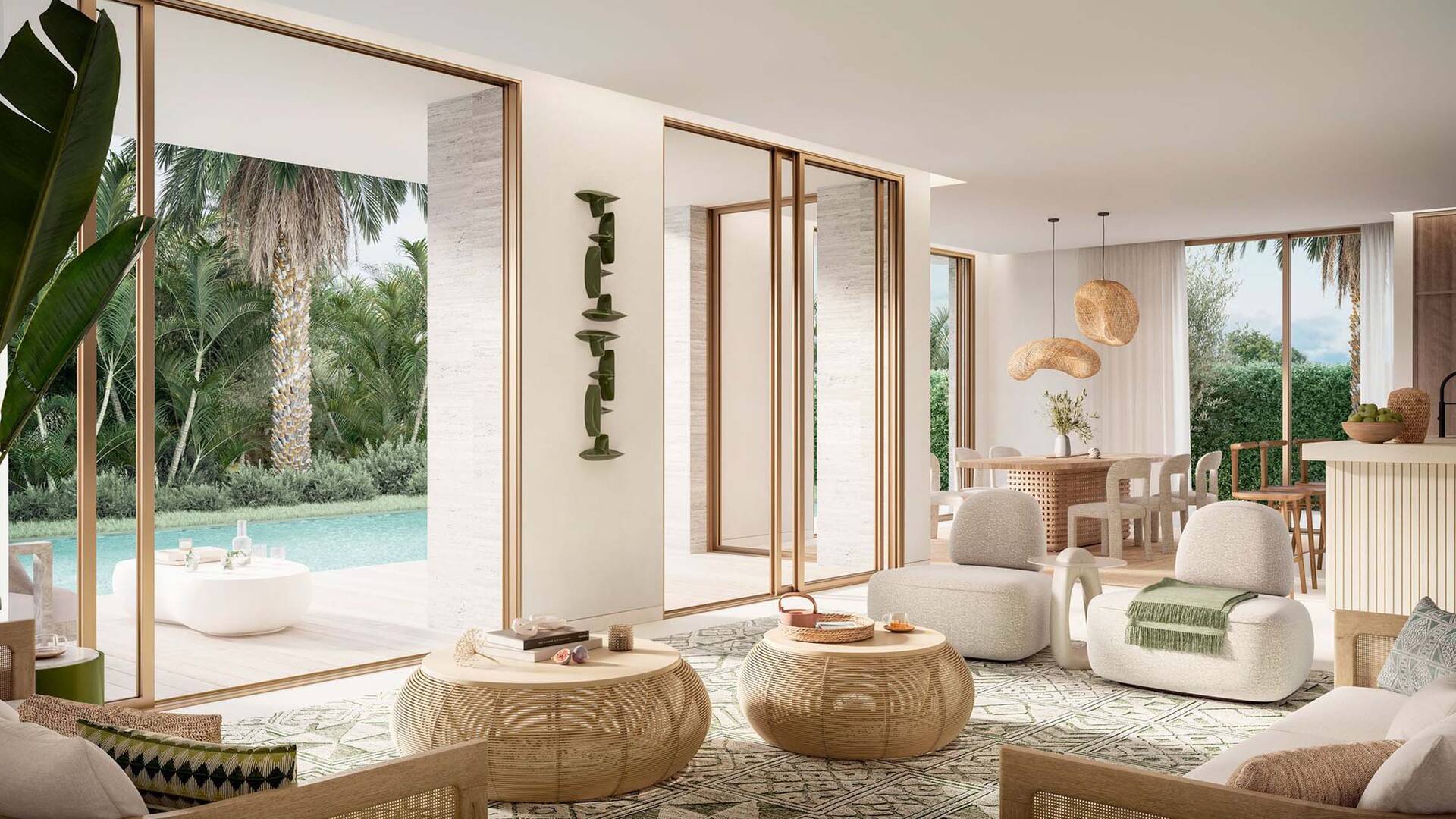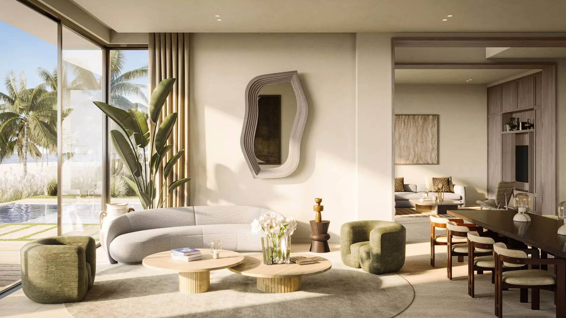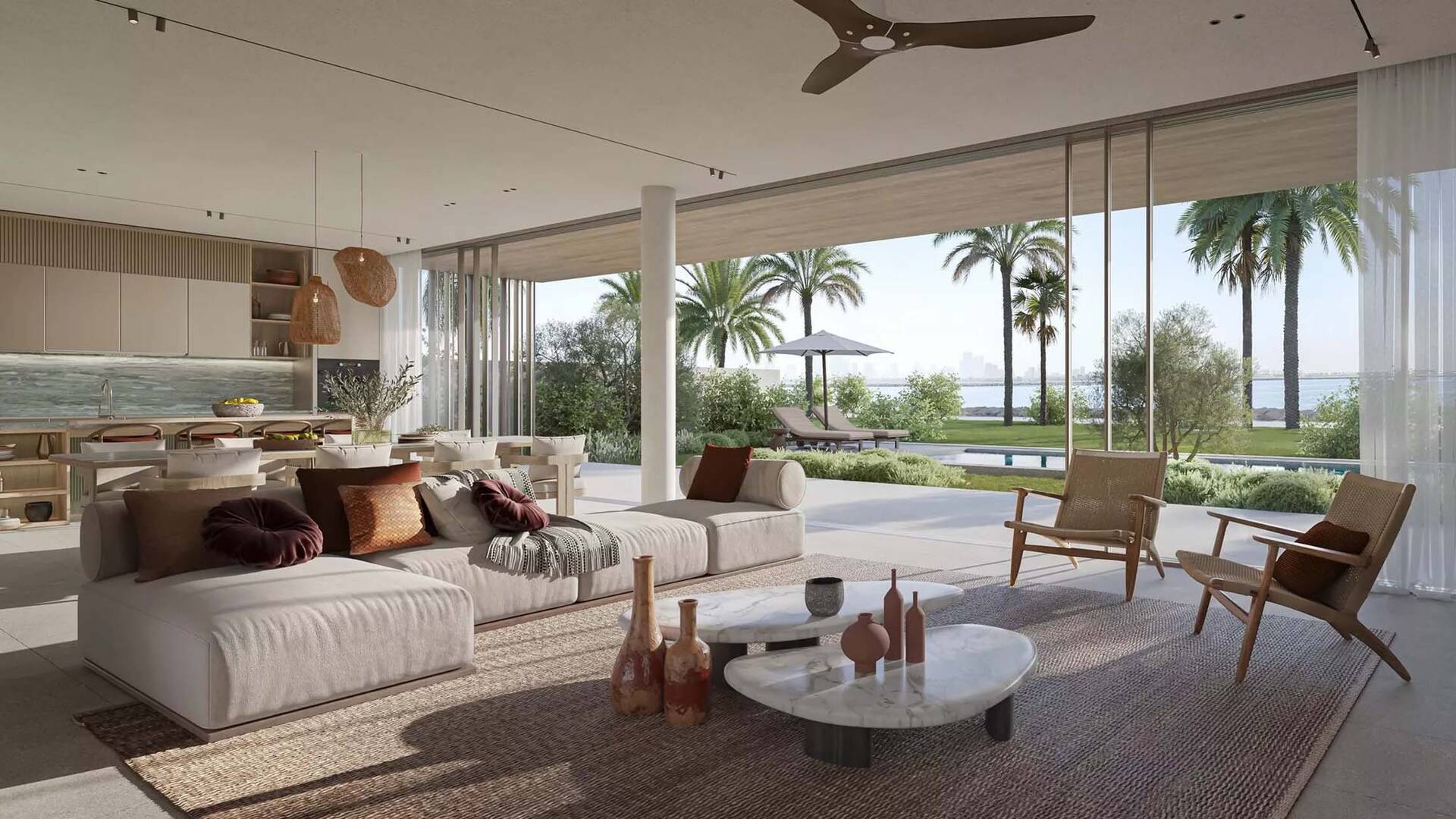 Bay Villas by Nakheel Properties consists of townhouses with 3 and 4 bedrooms, as well as villas with 4, 5, and 6 bedrooms. As of August 8, 2024, single-story 6-bedroom villas with areas ranging from 13,264 to 13,828 sq. ft. are available for purchase. The prices of these homes range from AED 43,067,000 to AED 45,176,000. Nakheel, the developer of this project, is known for its iconic projects such as the legendary Palm Jumeirah, The World, and Jumeirah Islands.