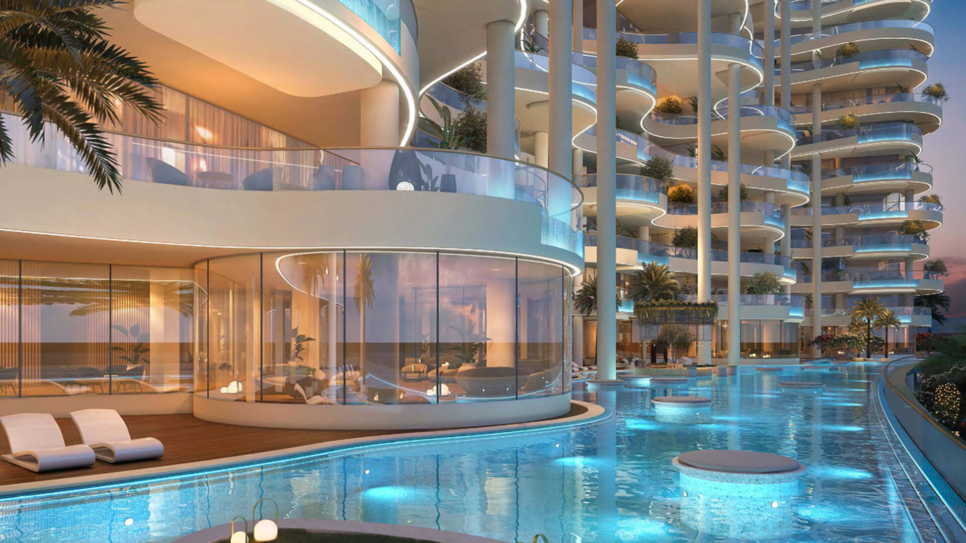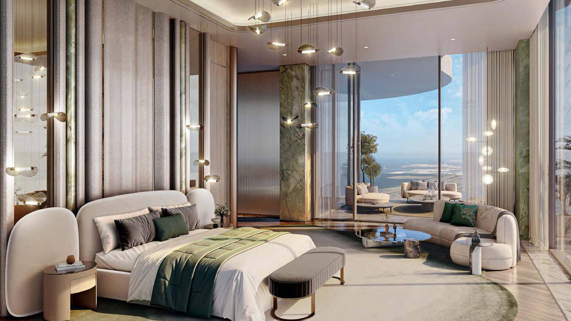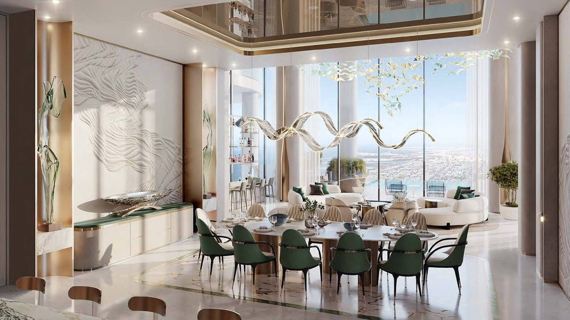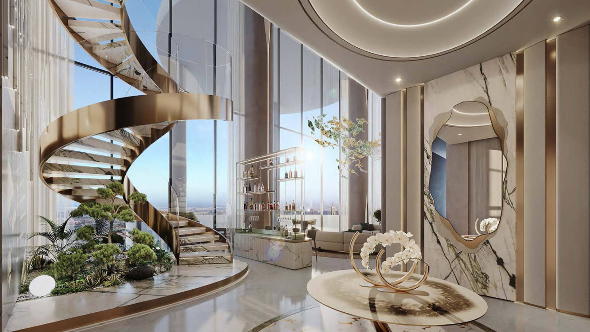 Cavalli Couture by DAMAC Properties is a 16-story residential complex with 95 residences, featuring signature prints from the fashion house Cavalli. Available for purchase are apartments with 3–4 bedrooms ranging from 372.4 to 839.5 sqm; duplex residences with 5 bedrooms and terraces on each level — 708.2–1,077.2 sqm, and penthouses with 6 bedrooms, two terrace pools, and a vast leisure area on the roof measuring 2,436.5 sqm. Views of Burj Khalifa are visible from the lobby windows, the spa relaxation area, and the observation deck.