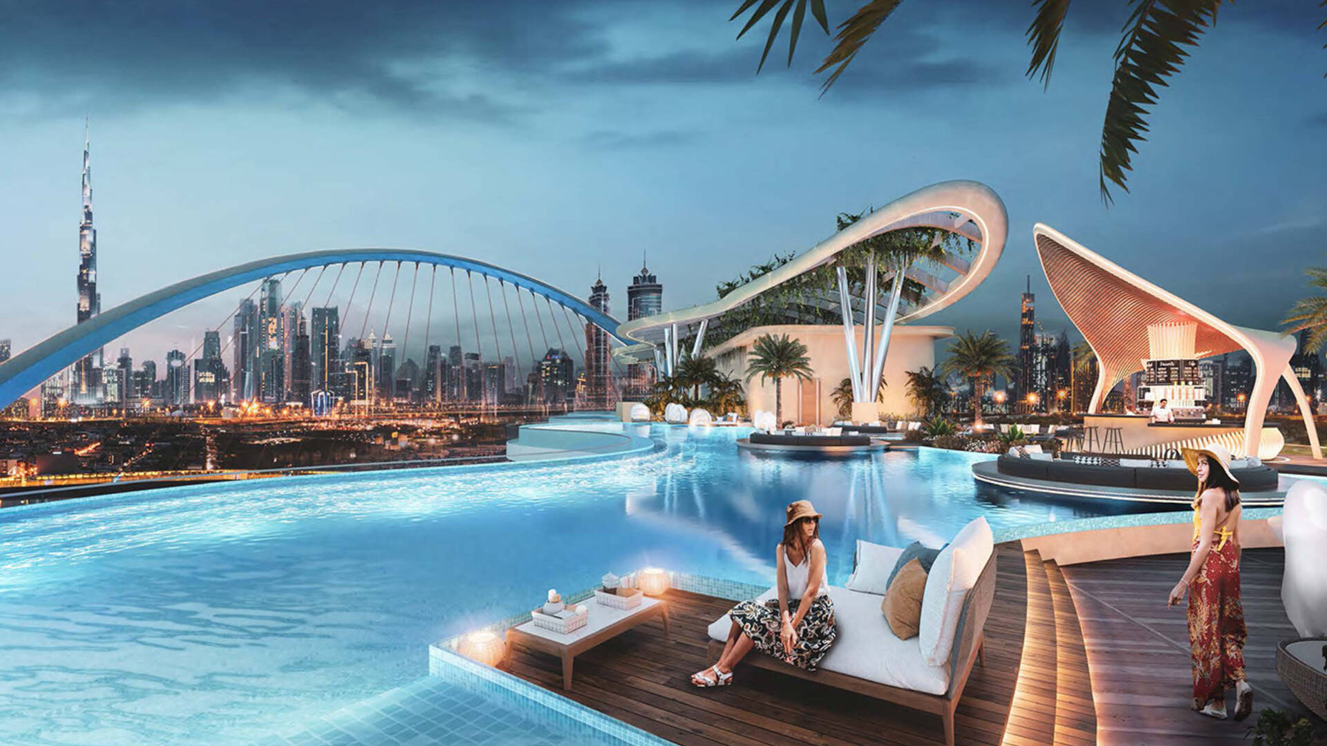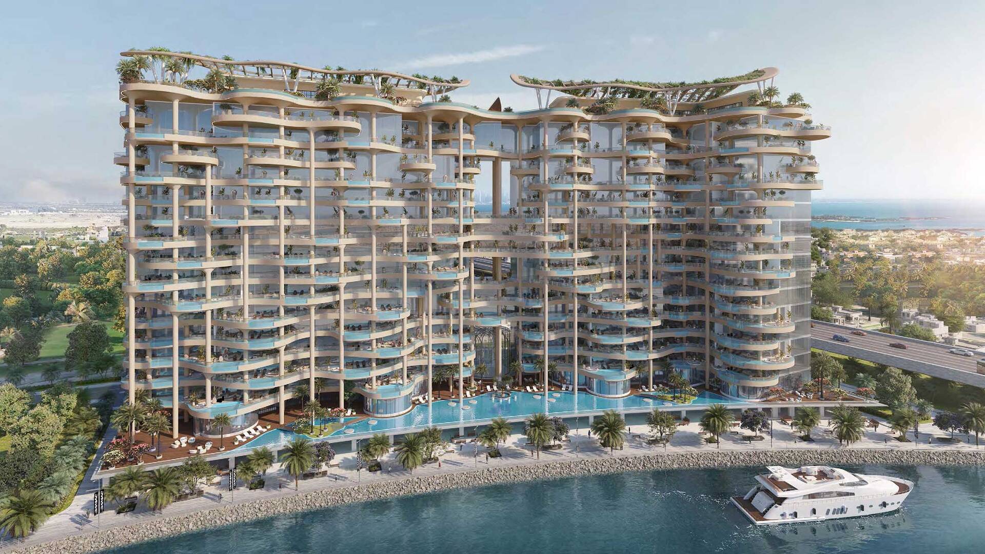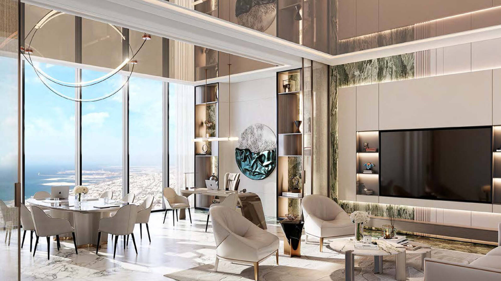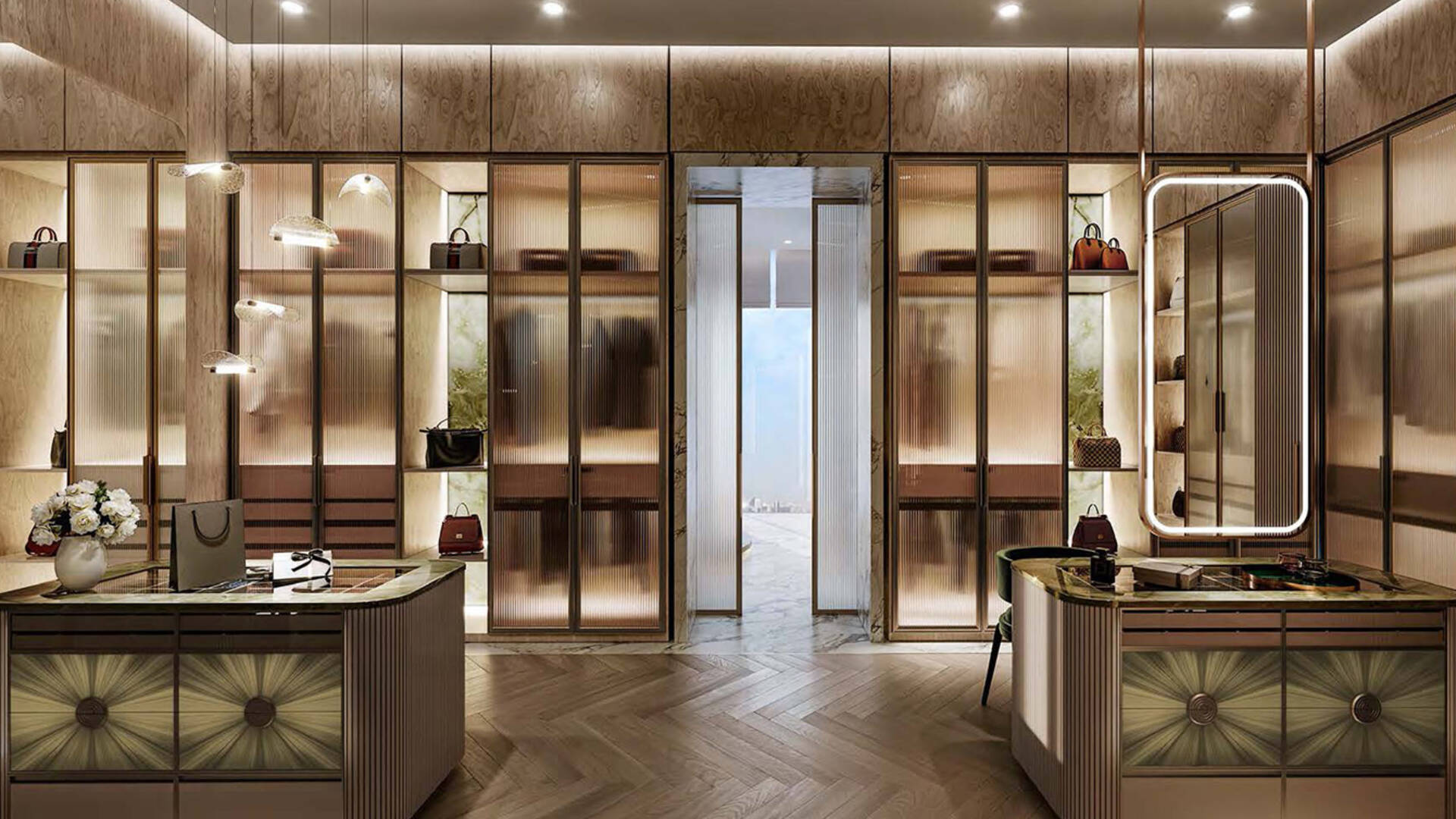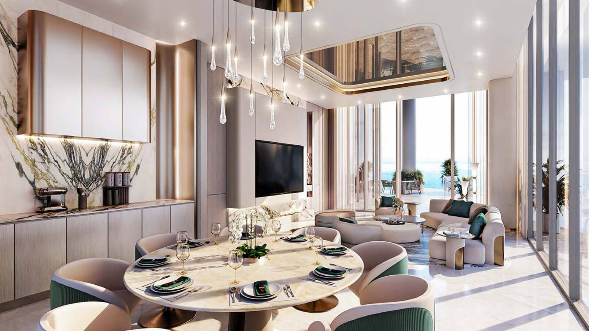 Cavalli Couture by DAMAC Properties is a 16-story residential complex with 95 residences, featuring signature prints from the fashion house Cavalli. Available for purchase are apartments with 3–4 bedrooms ranging from 372.4 to 839.5 sqm; duplex residences with 5 bedrooms and terraces on each level — 708.2–1,077.2 sqm, and penthouses with 6 bedrooms, two terrace pools, and a vast leisure area on the roof measuring 2,436.5 sqm. Views of Burj Khalifa are visible from the lobby windows, the spa relaxation area, and the observation deck.