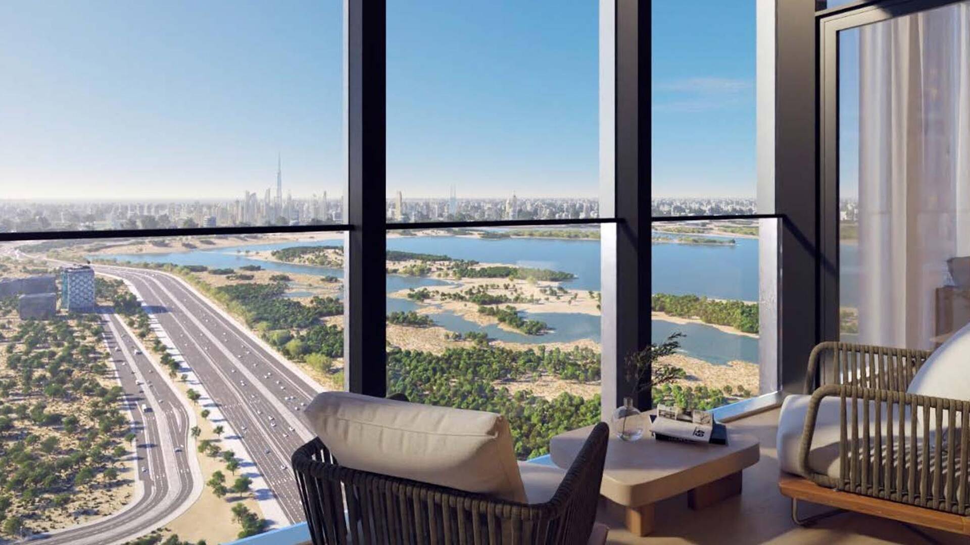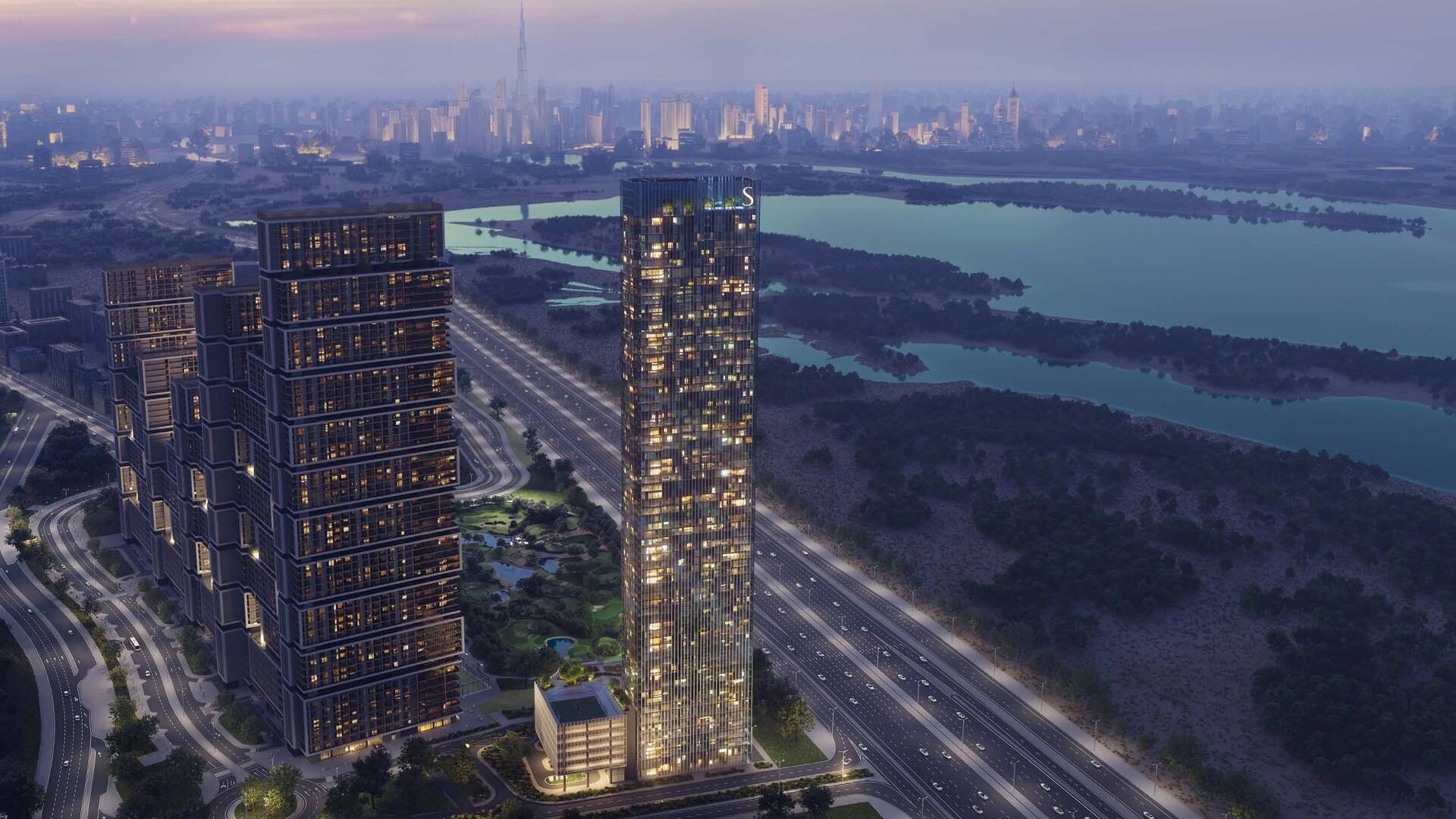 The Element at Sobha One by Sobha Realty is a modern premium residential complex consisting of 60 floors, offering one-, two-, three-, and four-bedroom apartments. Apartment sizes range from 740 to 2,445 sq. ft. Prices start from AED 1,800,000 for one-bedroom apartments, AED 3,000,000 for two-bedroom options, AED 4,700,000 for three-bedroom, and AED 6,400,000 for four-bedroom apartments. The internal infrastructure includes an 18-hole golf course, four themed parks, swimming pools, wellness areas, lounge spaces, and an open-air cinema. The project borders the Ras Al Khor Wildlife Sanctuary and is located within Sobha Hartland 2, part of the Ras Al Khor district in Dubai. The location provides convenient access to key areas of Dubai and major shopping centers.