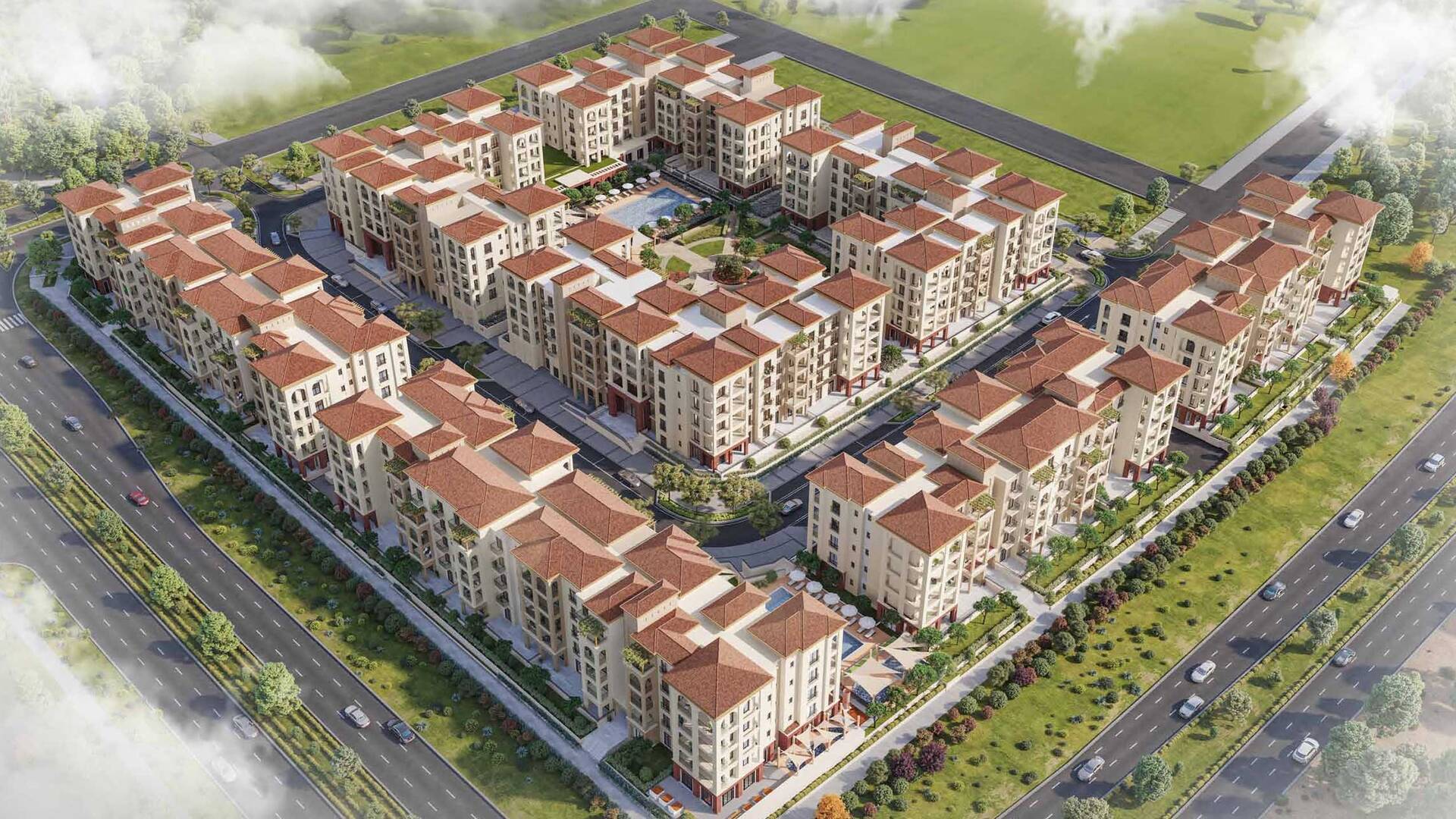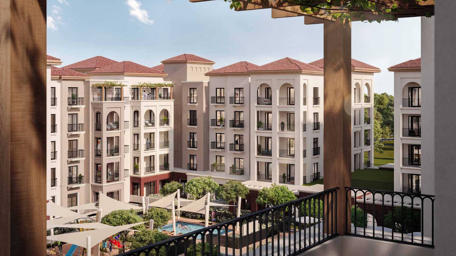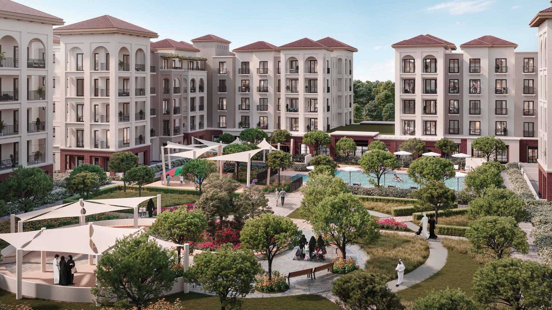 Residents benefit from a wealth of amenities, including beautifully landscaped courtyards, shaded playgrounds, fitness centers, cafes, and swimming pools. Positioned as a multi-generational living destination, Granada is ideal for families, professionals, and retirees alike.