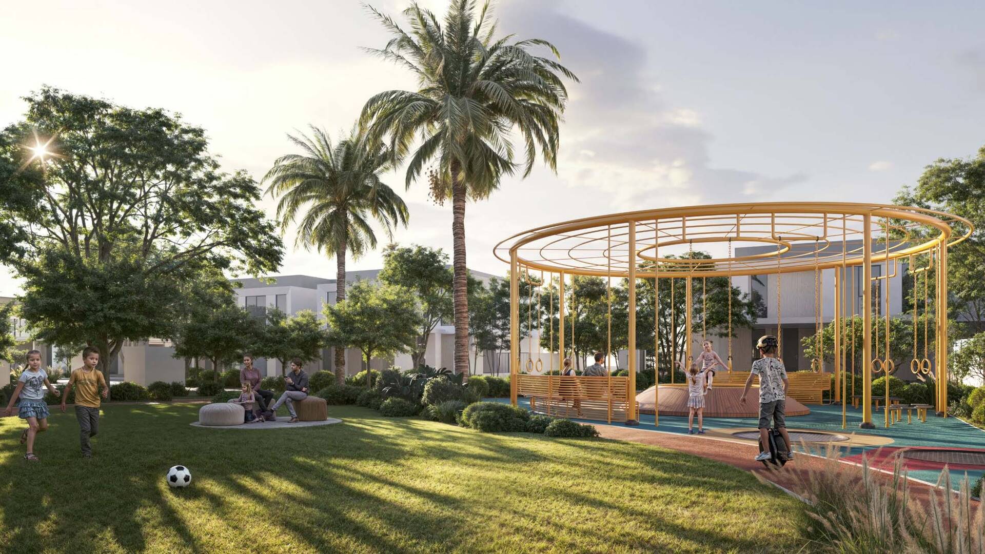 Greenridge by Emaar Properties is a modern premium-class residential complex in the golf community of Emaar South, Dubai. The price includes high-quality turnkey finishes, modern kitchens, luxurious bathroom finishes, and a parking space. Panoramic windows offer beautiful views of lush green hills and golf courses.