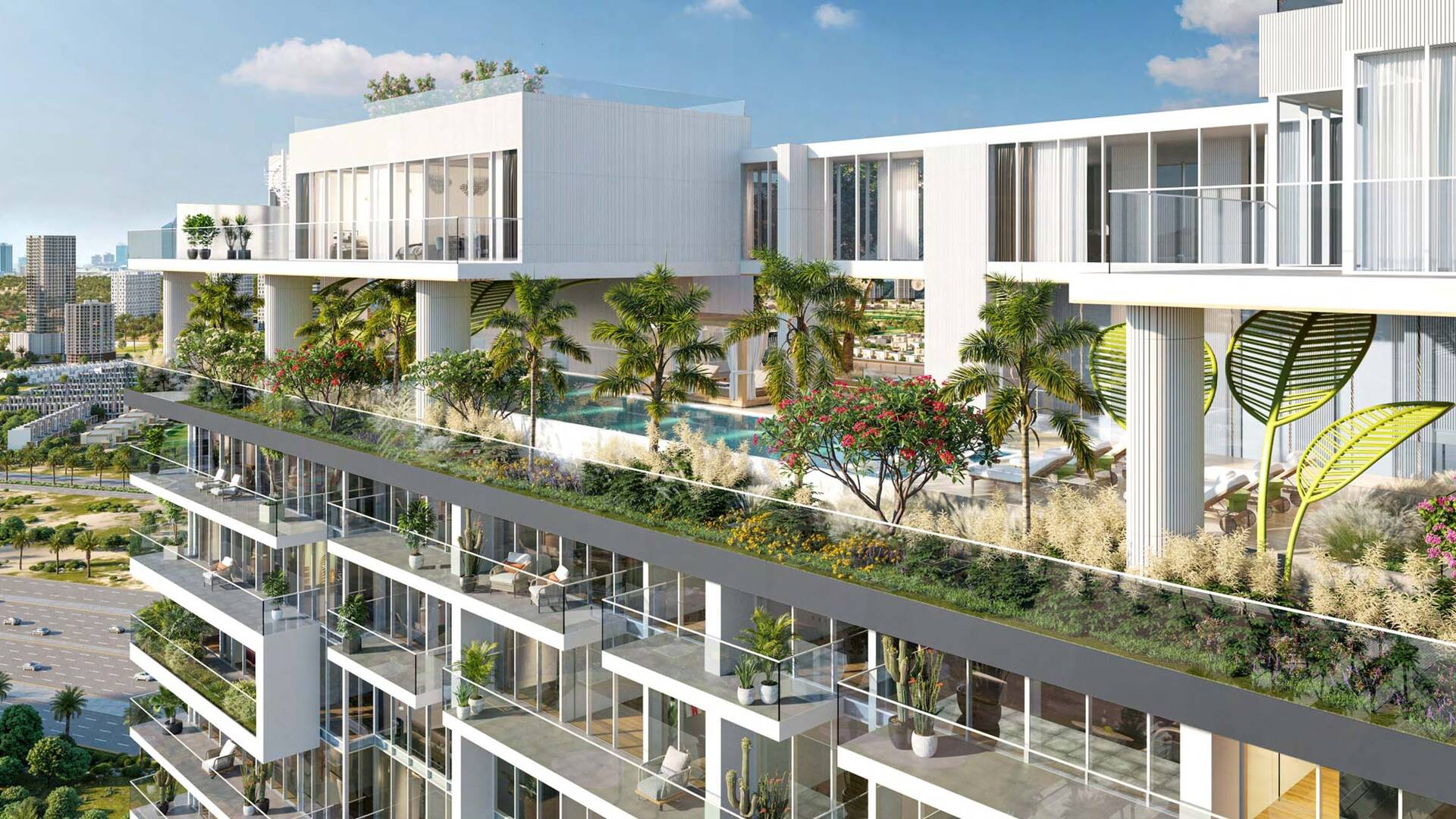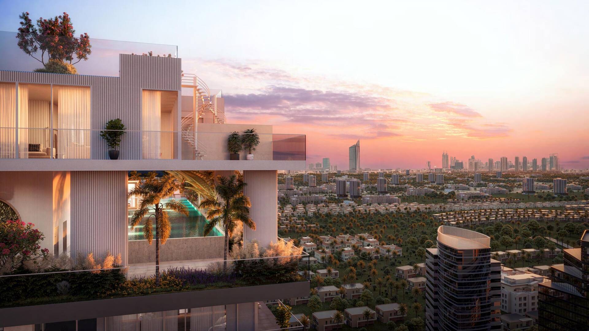 The Legado residential complex by the developer Prescott Real Estate offers a choice of studios and apartments with 1, 2 and 3 bedrooms, as well as exclusive penthouses (sky villas) with stunning panoramic views of Dubai and immediate surroundings. The area of the apartments ranges from 365 to 1,554 sq. ft. The project’s infrastructure includes a 35-meter infinity pool, multiple terraces, lounge areas, a modern gym, a multi-level cinema, and much more.