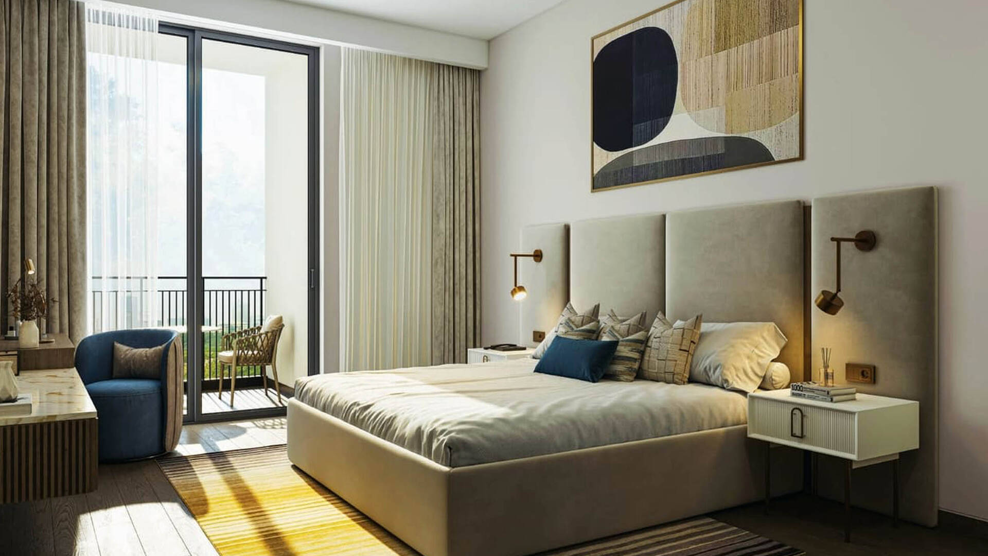 Marriott Residences Al Barsha South by MAG Property Development is a 24-story premium-class residential complex that includes 1-, 2-, and 3-bedroom apartments, penthouses, and townhouses. All apartments are equipped with advanced household appliances and designed according to modern comfort standards. The area of 1-, 2-, and 3-bedroom apartments ranges from 919.25 to 2,620.70 sq. ft. (85.4 to 243.4 sq. m.). Two- and three-bedroom penthouses range from 1,813.20 to 2,102.85 sq. ft. (168.5 to 195.5 sq. m.). Two-bedroom townhouses have an area of 2,215.02 sq. ft. (205.8 sq. m.). The internal infrastructure includes a spa, conference hall, barbecue area, children's club, and covered parking. The complex is located in Al Barsha South, Dubai.