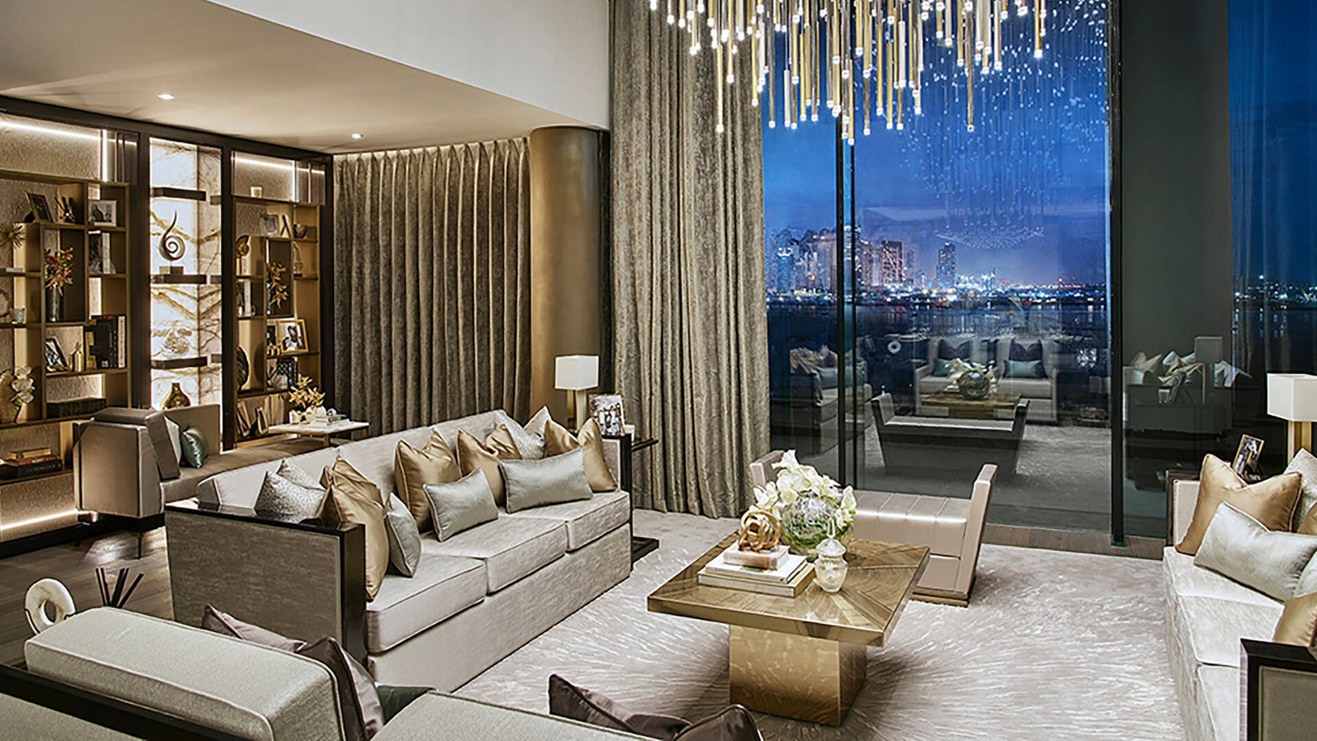 The residences at One at Palm Jumeirah by Omniyat Group offer a luxurious living experience, with each floor featuring only two units with bespoke furniture and stunning views. The exotic landscaped gardens with waterfalls and ponds add to the elegance of the property.