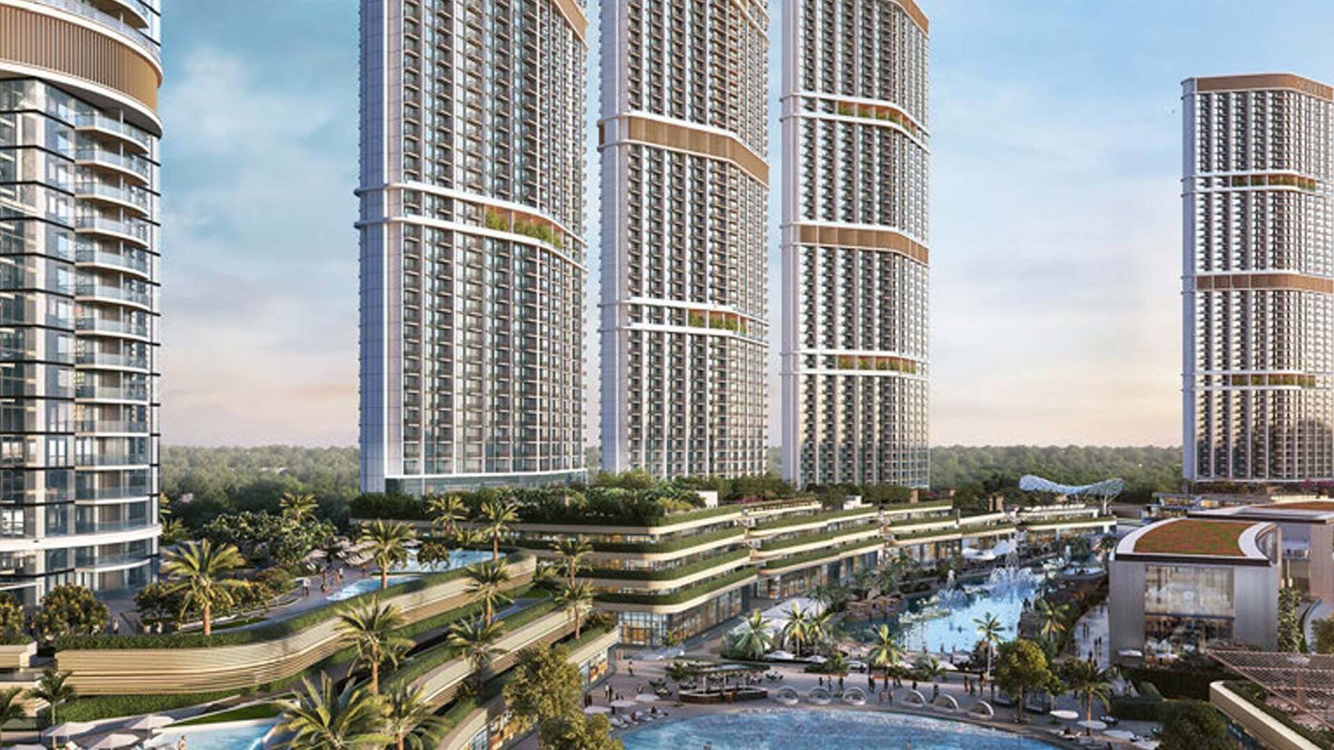Skyscape Altius by Sobha Realty represents the third and final phase of the Skyscape residential complex in Sobha Hartland 2. This 85-story project features a five-level parking structure, lobby, private amenities including waterfront patios, a swimming pool, and children's playgrounds. The property consists of one-bedroom apartments, with and without a study, starting from 635 sq. ft., and two-bedroom apartments, with and without a study, starting from 967 sq. ft. The windows offer panoramic views of the lagoon or the Dubai skyline.