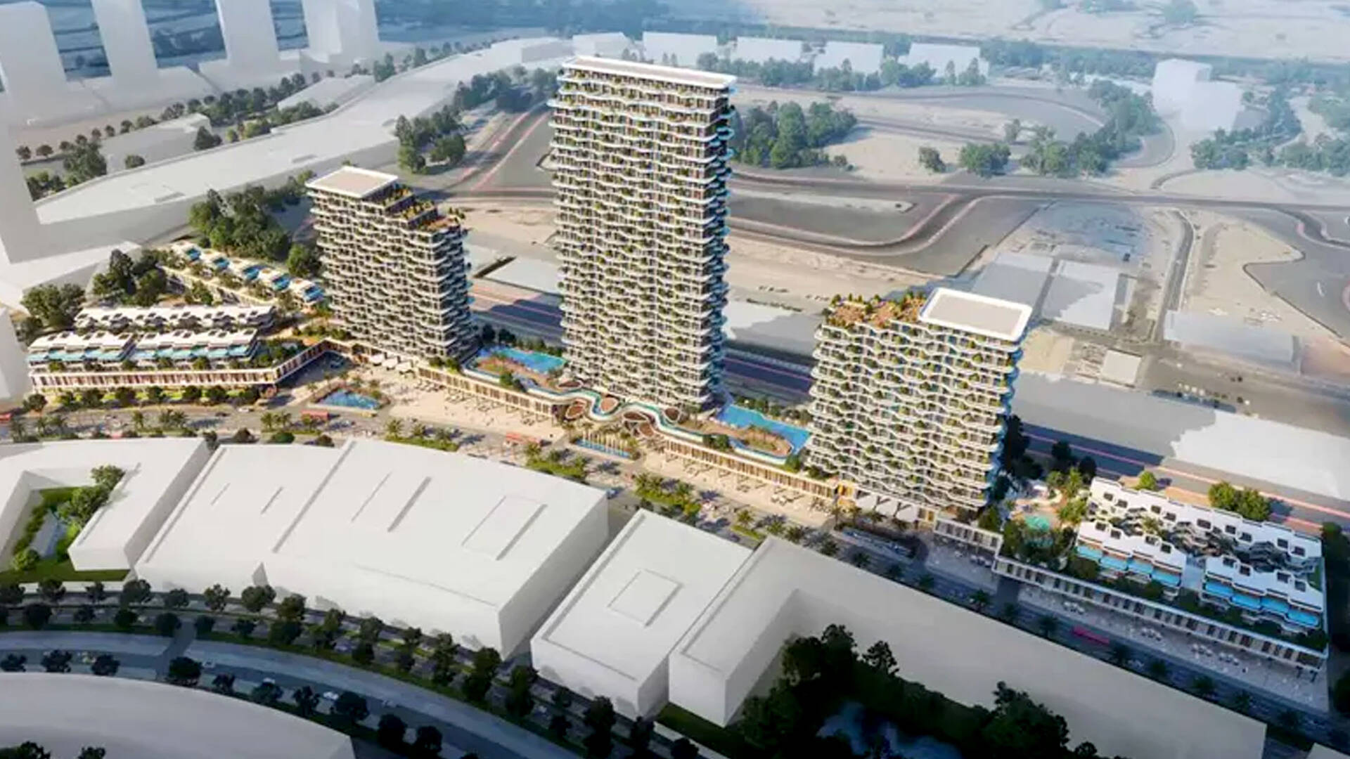 Takaya at Motor City by Union Properties is a residential complex consisting of three buildings and includes 788 apartments, 39 townhouses, 5 villas, as well as retail spaces covering an area of 55,000 square feet.