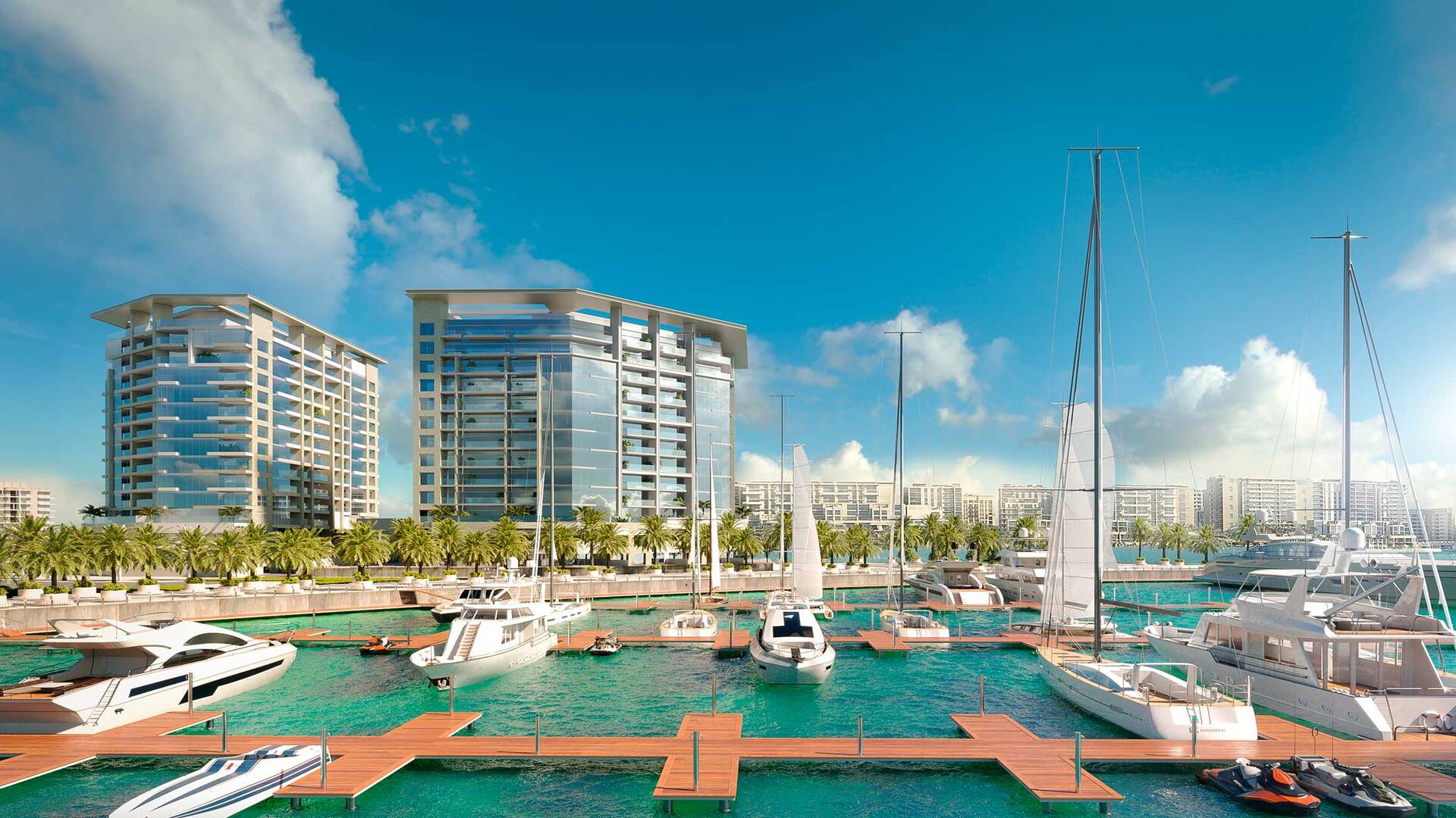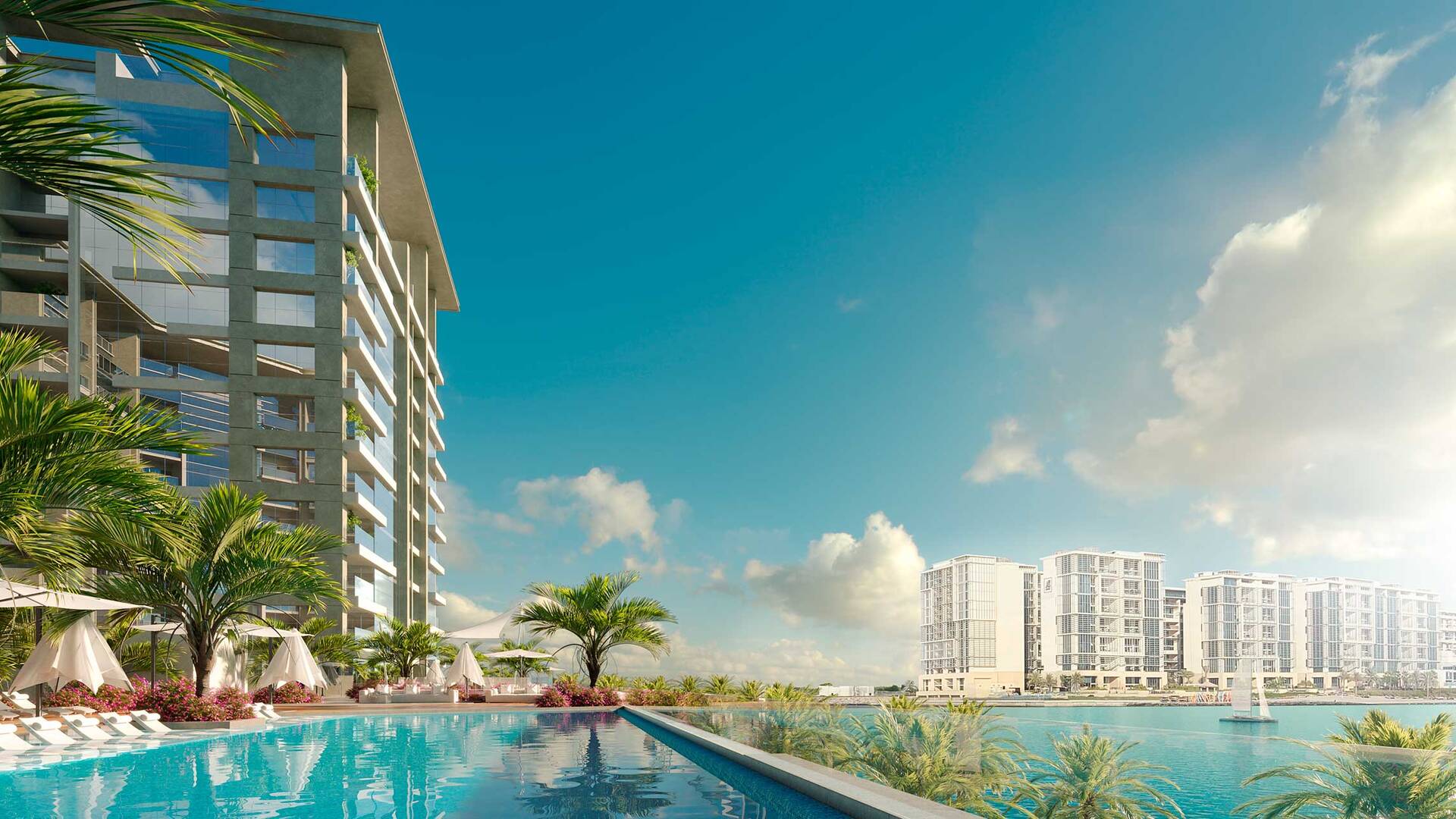The Bay Residence 2 is an 11-story luxury residential complex featuring a lobby, podium with amenities, and apartments with 1, 2, and 3 bedrooms ranging from 927 to 2,475 sq. ft. It also offers 3- and 4-bedroom penthouses from 1,749 to 2,859 sq. ft., and townhouses with pools and 3-4 bedrooms ranging from 2,861 to 4,391 sq. ft. As of June 2024, all studios in the project have been sold.