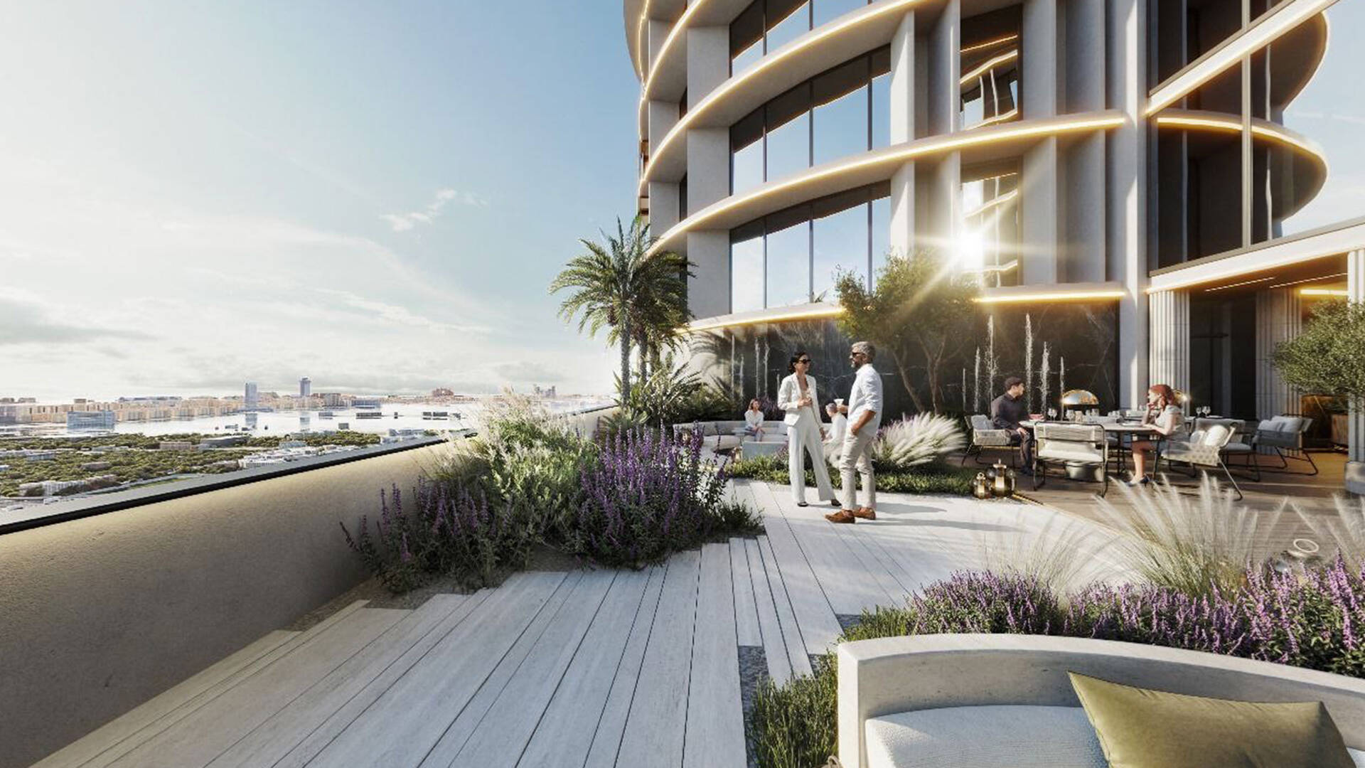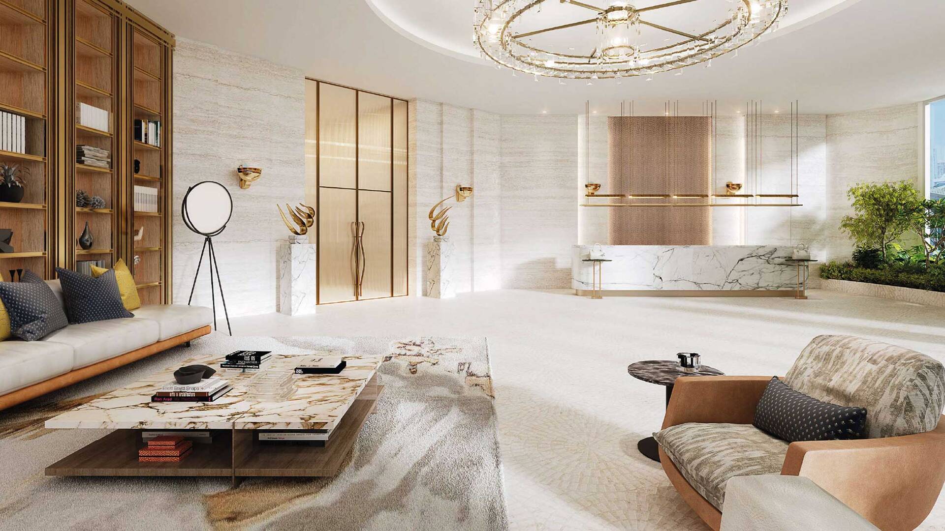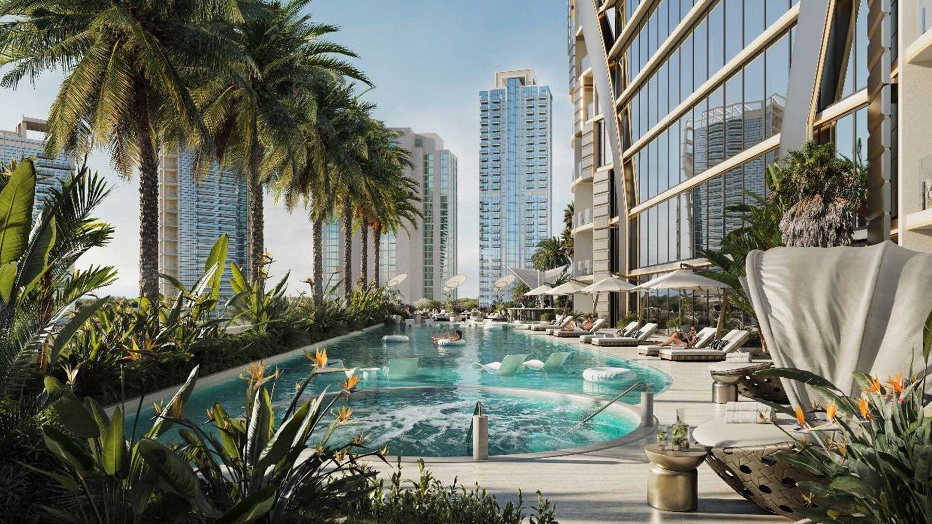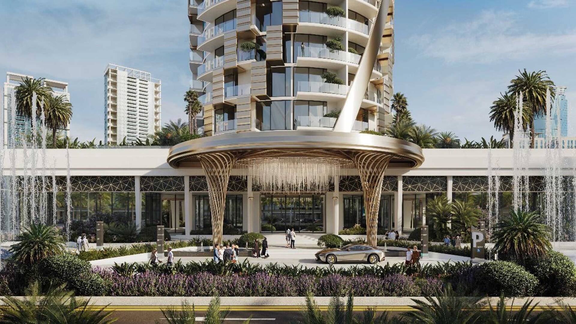 The Biltmore Residences Sufouh by GJ Real Estate — a luxurious 44-storey residential complex. The building includes 480 apartments ranging from 56 to 255 square meters, parking, lobby, and a podium with recreational infrastructure.