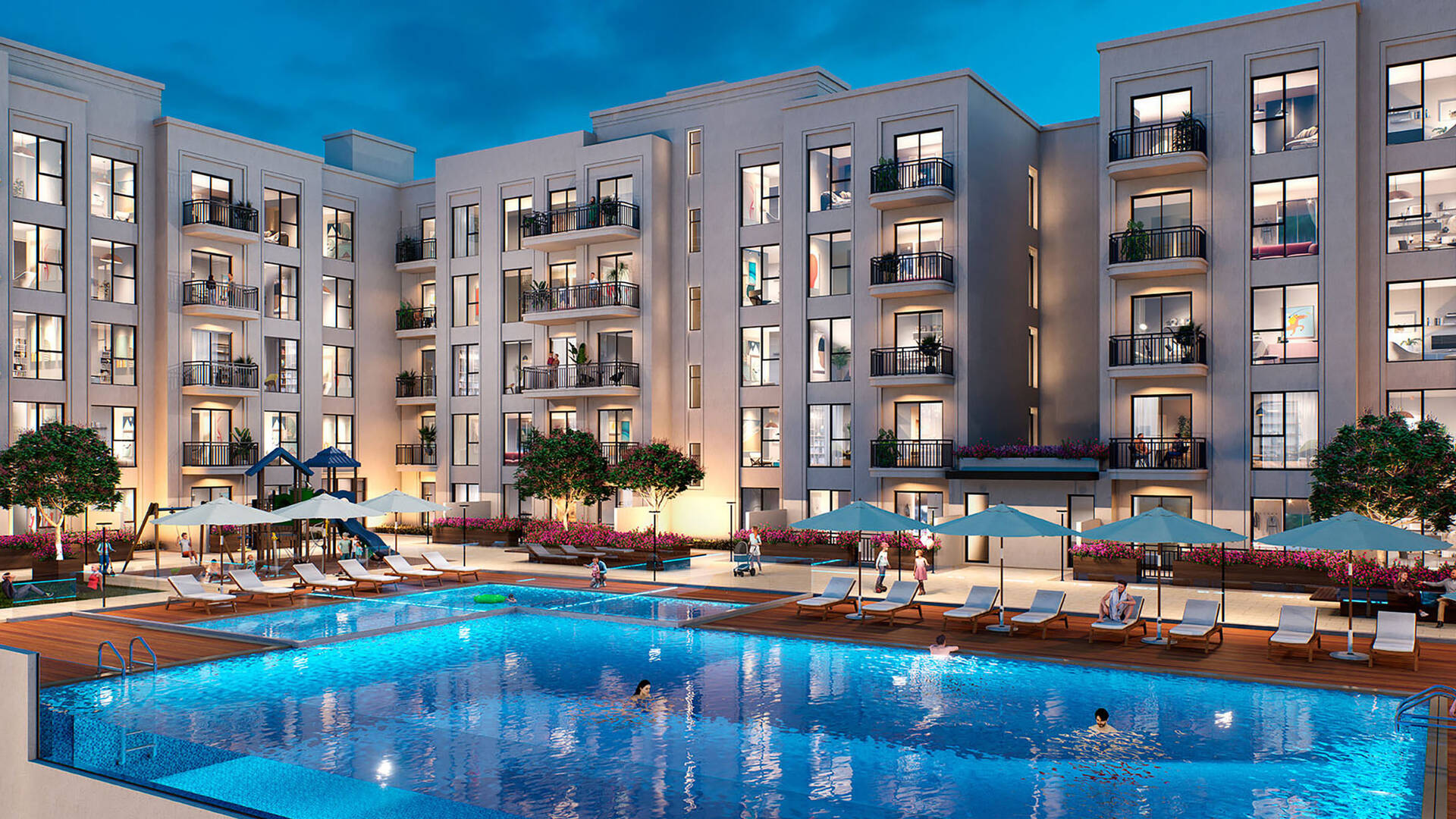 Новый шестиэтажный апарт-комплекс в двух минутах от центрального парка в новом районе Town Square Dubai. Вокруг уже готова вся инфраструктура для семейной городской жизни: начиная от поликлиник, детских садов и международных школ и заканчивая теннисными кортами и аквапарком.