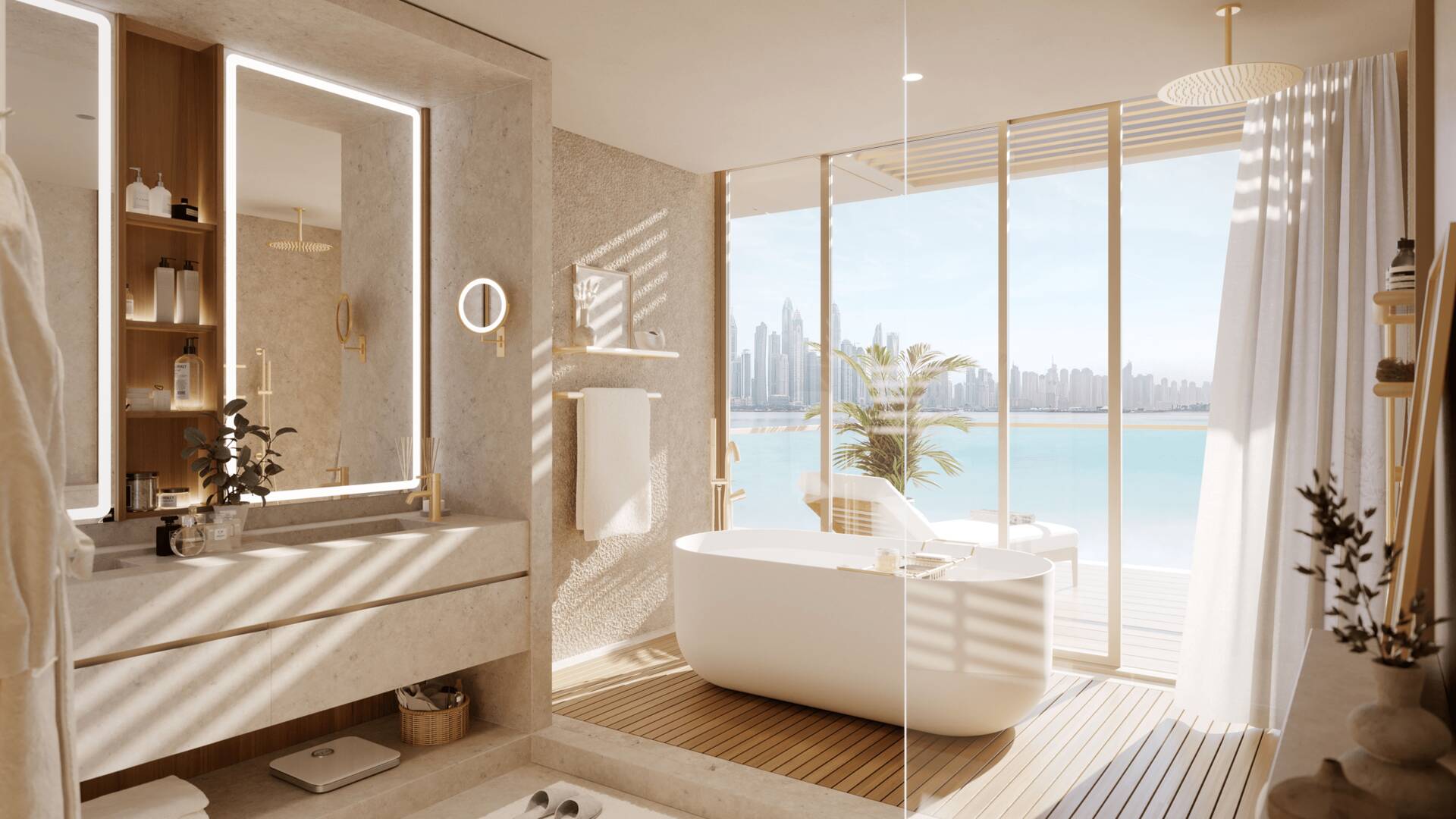 Апарт-комплекс на берегу моря с частным пляжем от одного из лучших застройщиков Дубая — Ellington Properties. Здание расположено на восточном «полумесяце» острова Palm Jumeirah, поэтому с балконов открывается вид на побережье и знаменитые отели Burj Al Arab и The Royal Atlantis.
