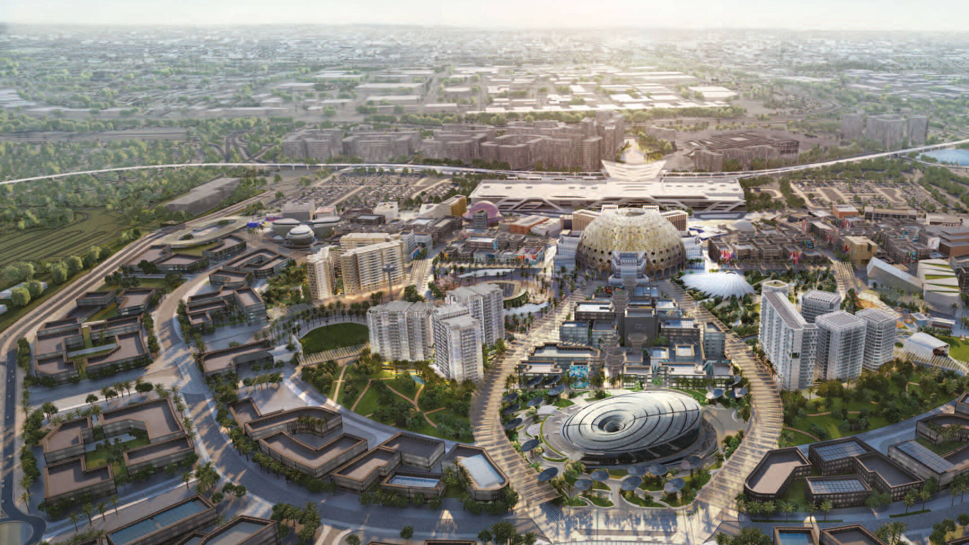 Экспо-Сити Дубай представляет собой полноценный район на юге Дубая. Здесь расположены выставочные залы, гостиницы, множество жилых и коммерческих объектов.