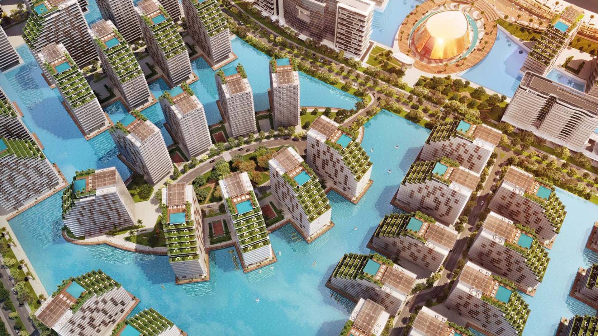 Azizi Venice от Azizi Developments — многофункциональный проект из жилых комплексов средней этажности, под которыми можно будет проплыть на сапборде, а также вилл с частными пляжами, деловыми зонами, образовательными и медицинскими учреждениями. Для покупки доступны студии и квартиры с 1–2 спальнями, и 4–7-спальные виллы.