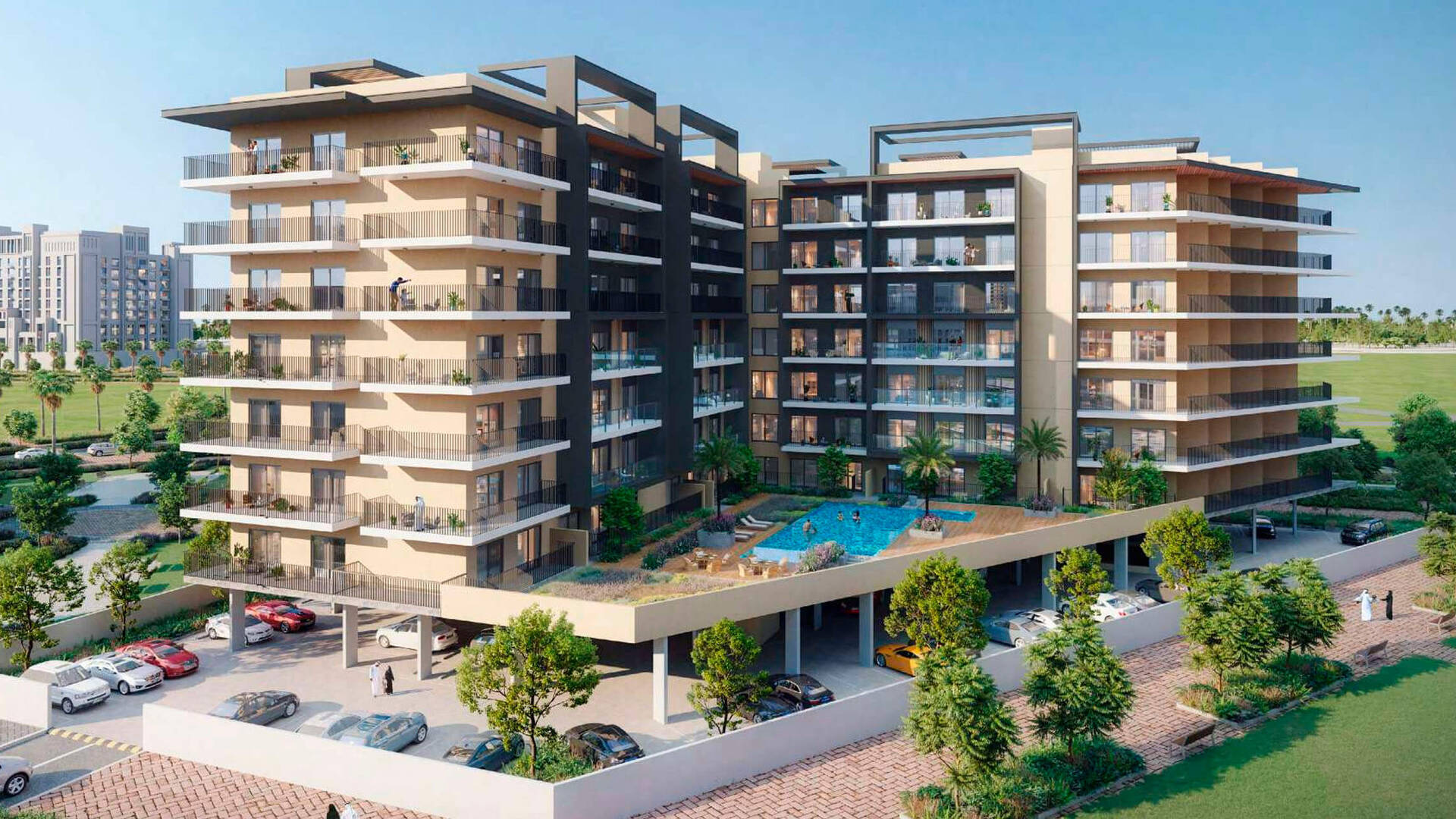 Divine Living Arjan от Takmeel Development — 8-этажный жилой комплекс с 1–3-спальными квартирами площадью от 71 до 189,1 кв. м. Благодаря просторным планировкам, близости к детским садам, школам и паркам проект хорошо подойдёт семьям с детьми.