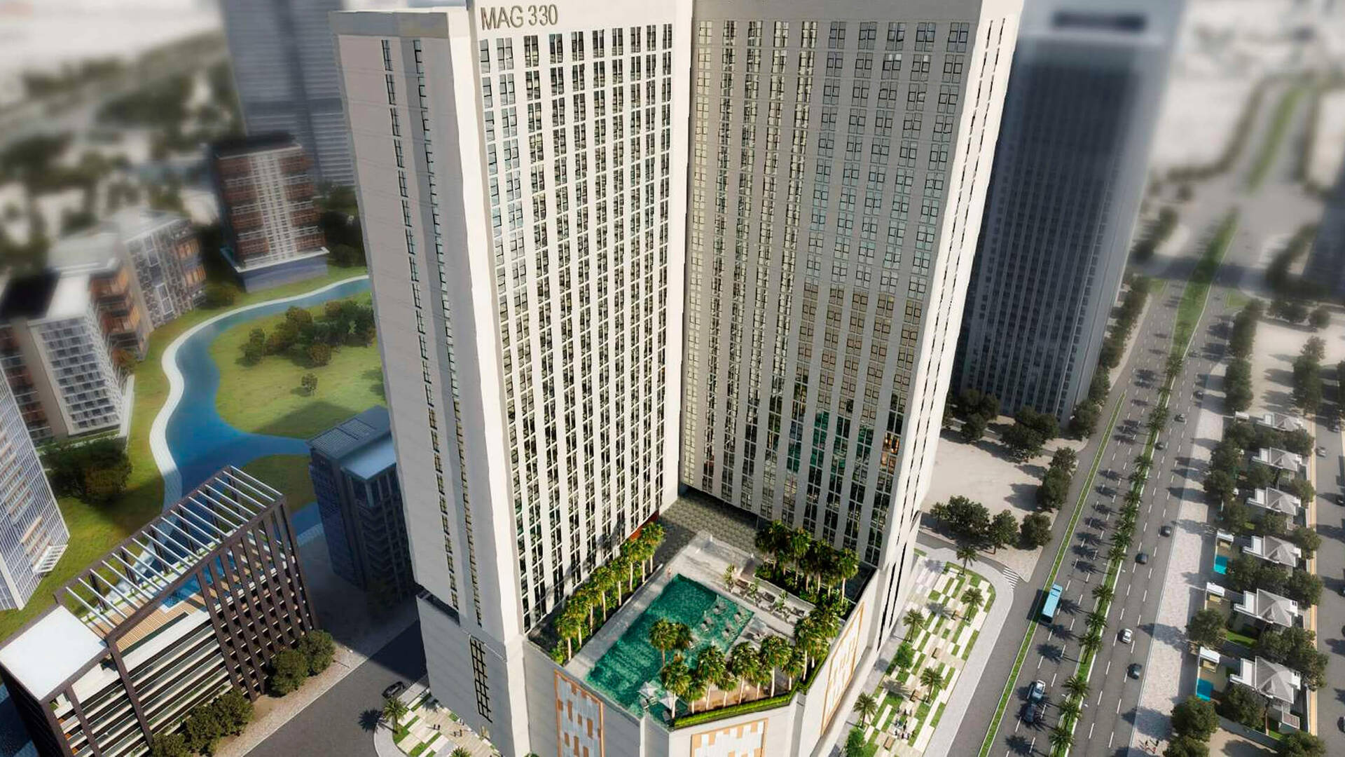 Жилой комплекс MAG 330 от Mag Lifestyle Development состоит из 29 жилых этажей со студиями и квартирами с одной и двумя спальнями площадью от 70 до 130 м², и пятиэтажного подиума с шикарной инфраструктурой.