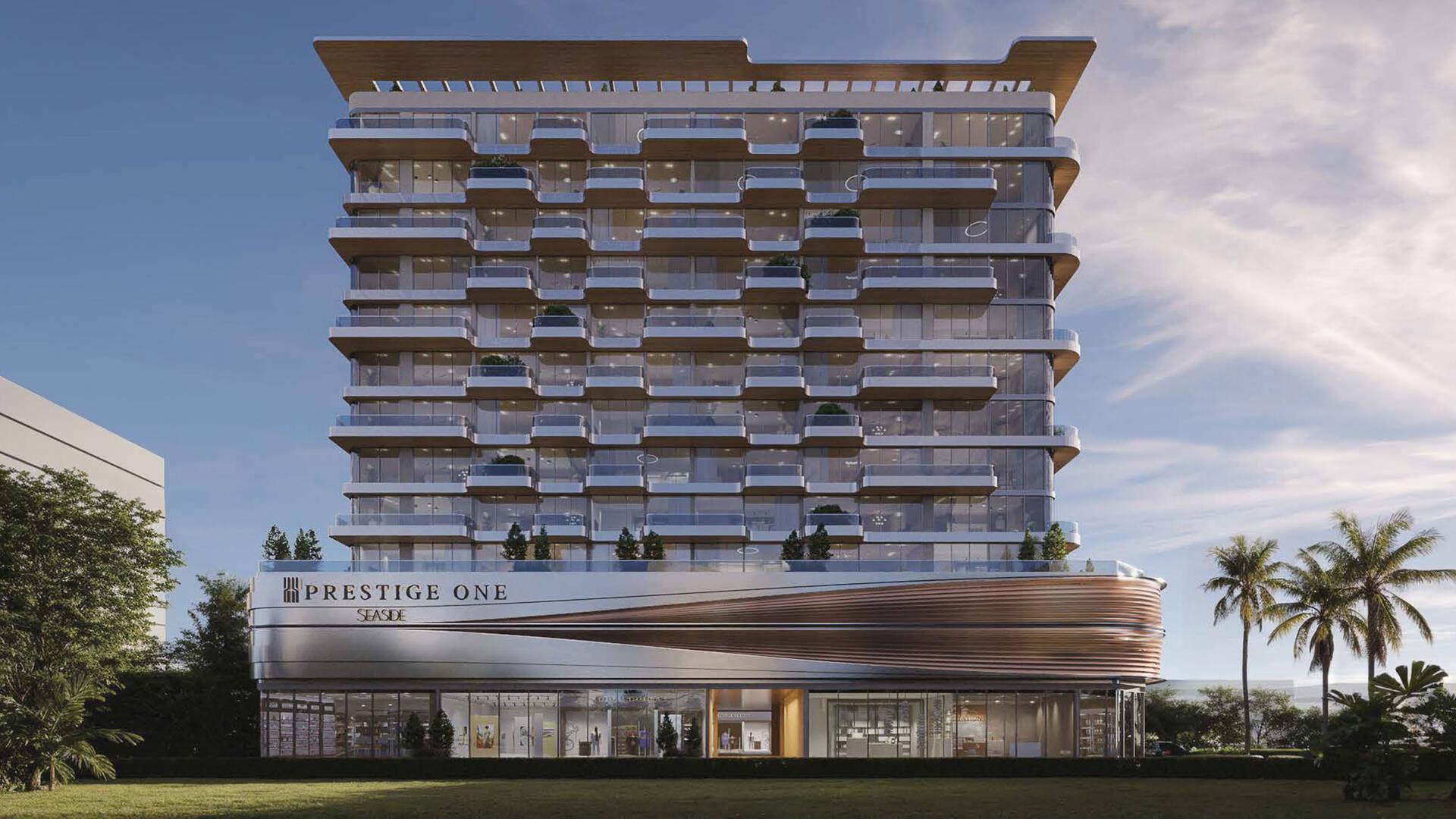 Seaside от Prestige One Developments — 10-этажный жилой комплекс с лобби, паркингом и приватной инфраструктурой на подиуме и крыше. Доступная для покупки недвижимость представлена квартирами с 1–3 спальнями площадью от 131 до 307 кв. м. Ряд лотов спланированы с собственными балконами на террасах.