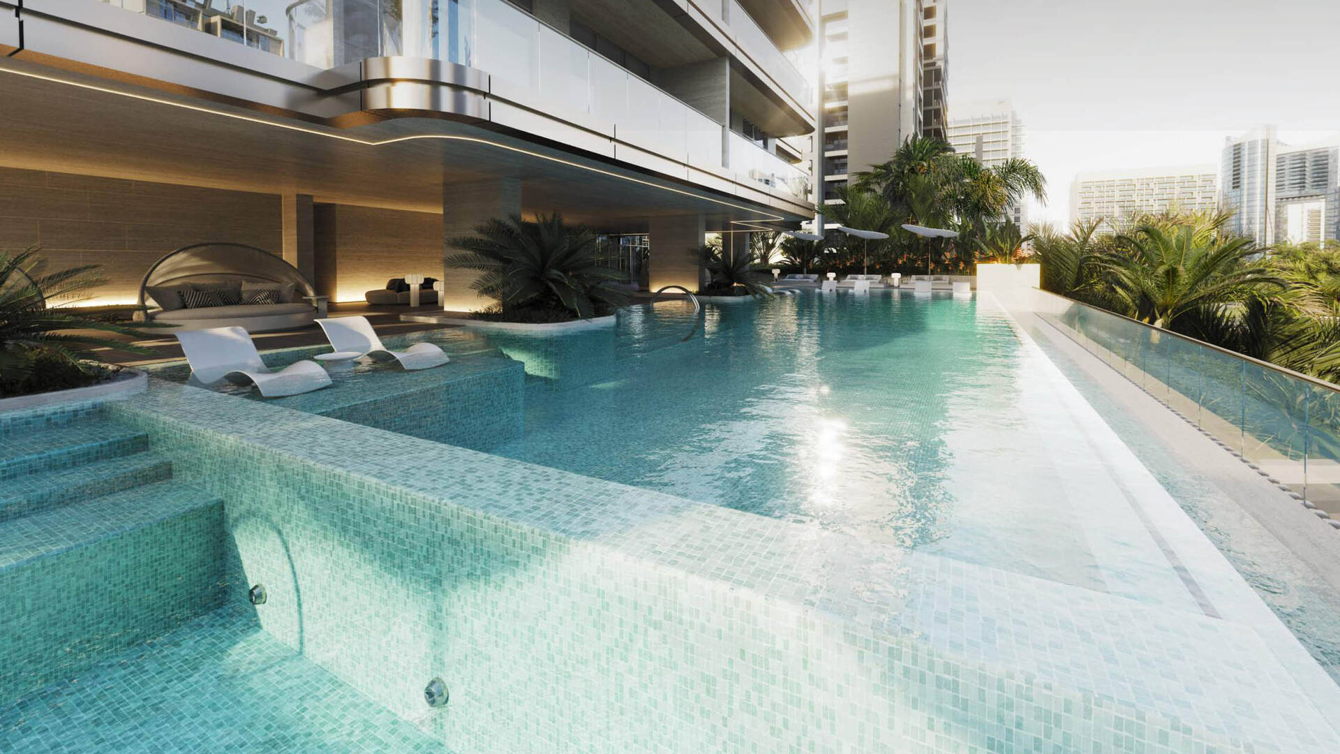 Urban Life Residences от Urban Properties Development — 19-этажное жилое здание премиум-класса с 3-уровневым паркингом, развлекательной инфраструктурой, которая занимает 1 этаж и квартирами. По данным на 21 июня 2024 года, для покупки доступны студии и квартиры с 1 и 2 спальнями площадью от 418 до 1,761 кв. ф. Из окон открывается вид на парк и скайлайн Дубая.
